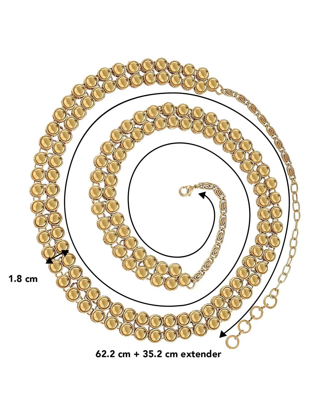 Dimensions: Belly Chain Length: 62.2 cm + 35.2 cm extender Width: 1.8 cm