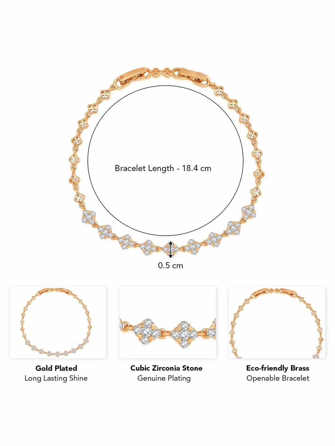 Product Name: Graceful Floral CZ Link Gold Bracelet