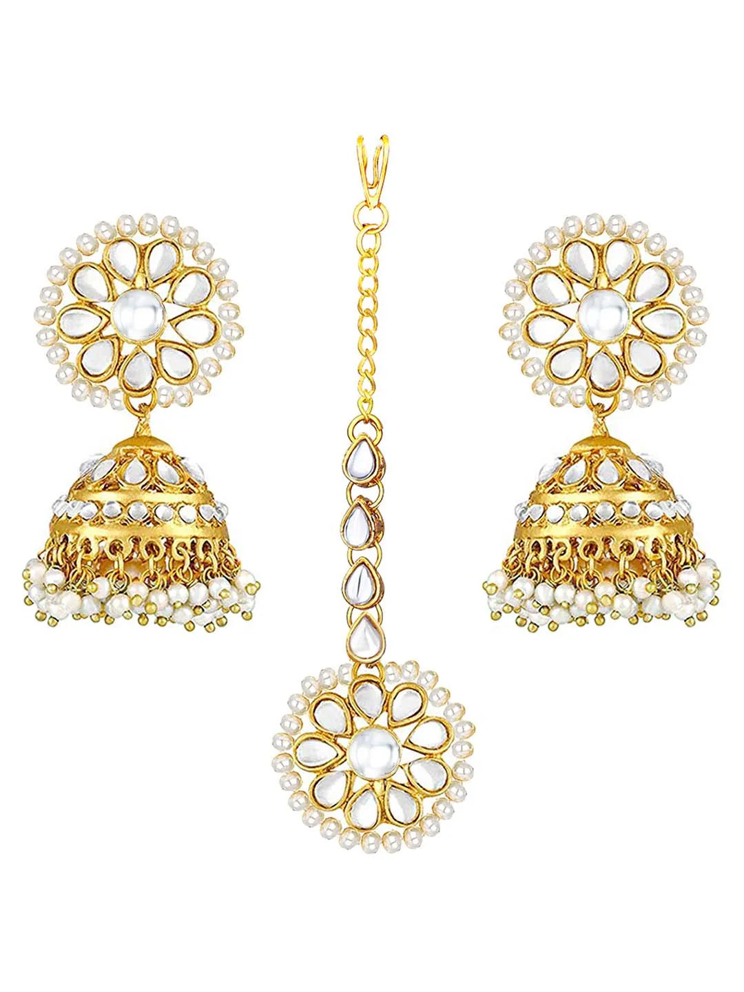 Product Name: Graceful Jhumki Pearl Kundan Tikka Set
