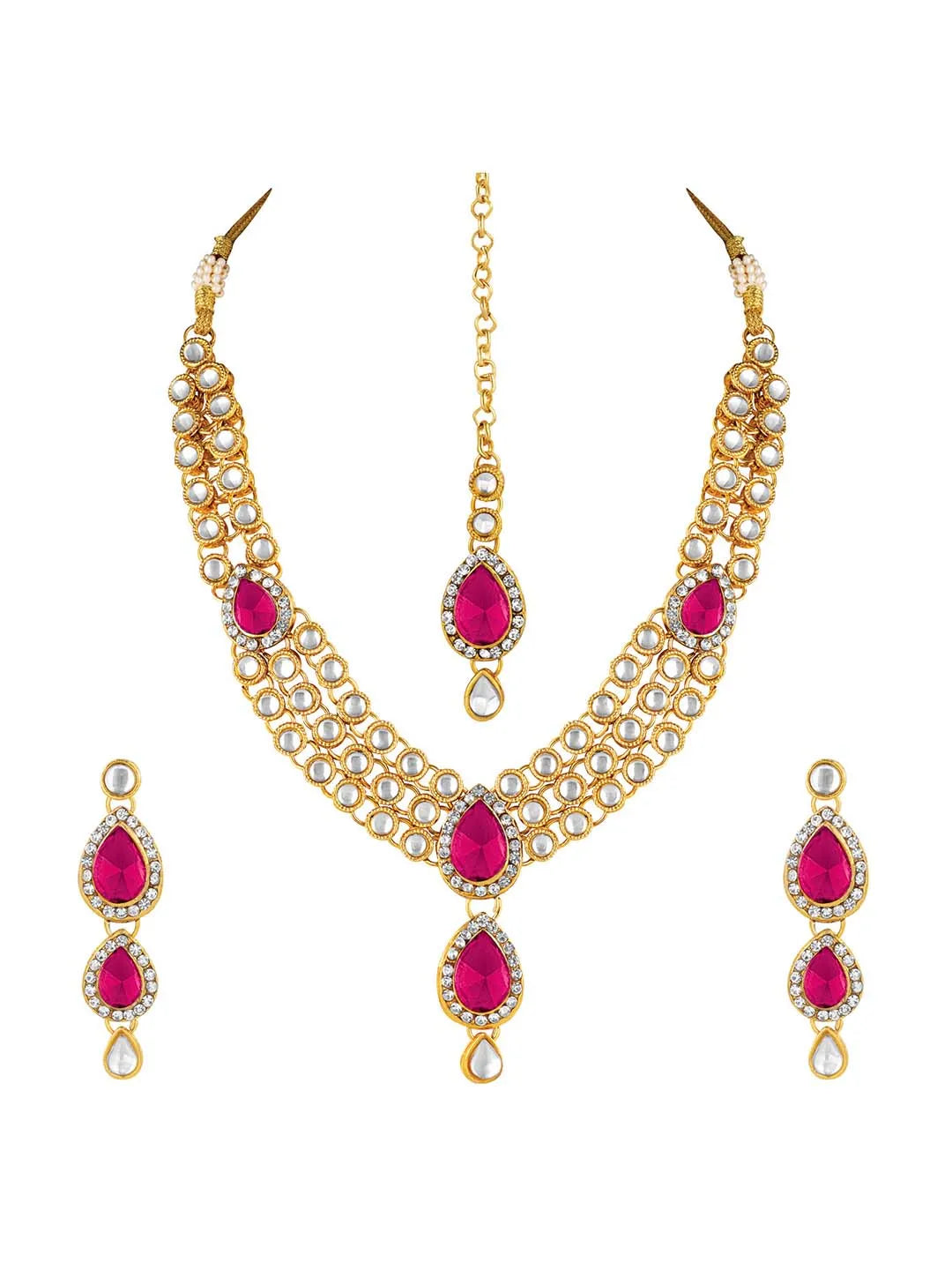 Dimensions: PRODUCT Necklace Length: 20.4 cm X Width: 4.5 cm; Earrings Length: 6.5 cm X Width: 2.5 cm; Maang Tikka Length: 13 cm X Width: 2.4 cm; Weight: 121 Grams