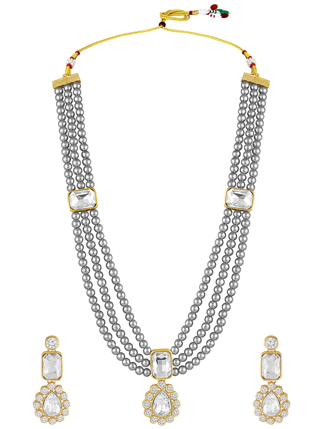 Product Name: Gracefully Layered Kundan Necklace Set - Grey