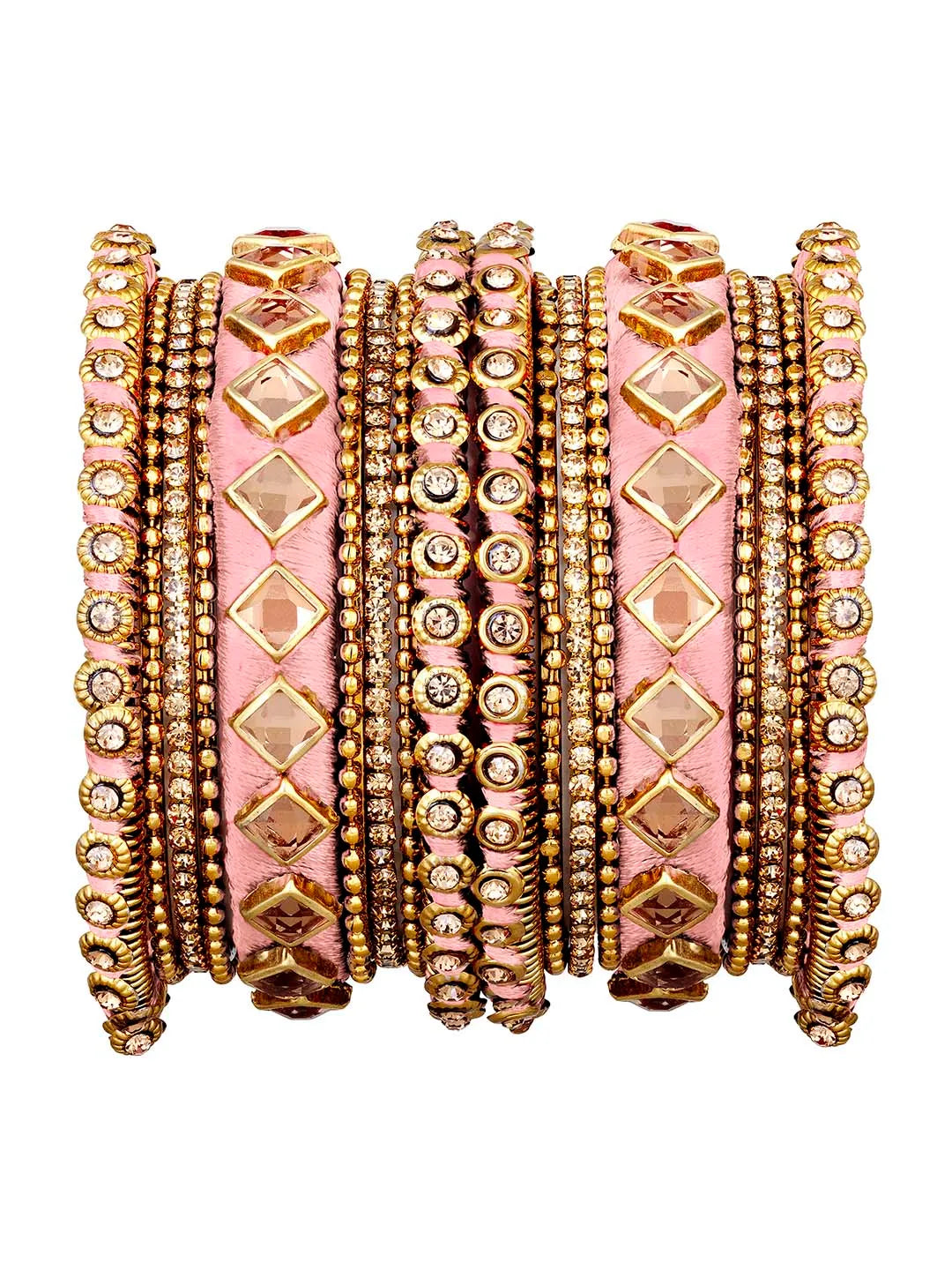 Product Name: Handmade Silk Thread Bangles Set - Peach