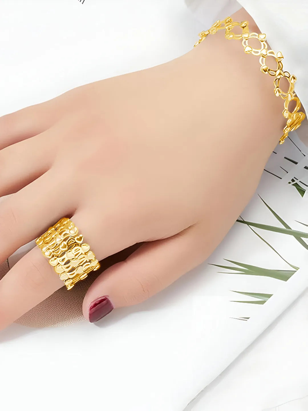 Product Name: Heart Link Transform Bracelet cum Ring - Gold