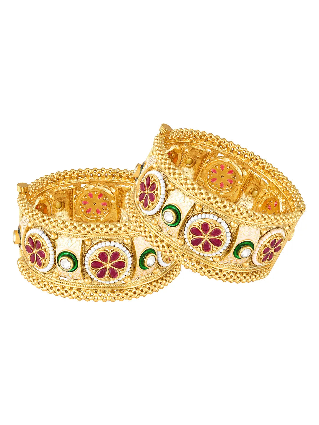 Product Name: Intricate Floral Motif Bangle Set - Gold