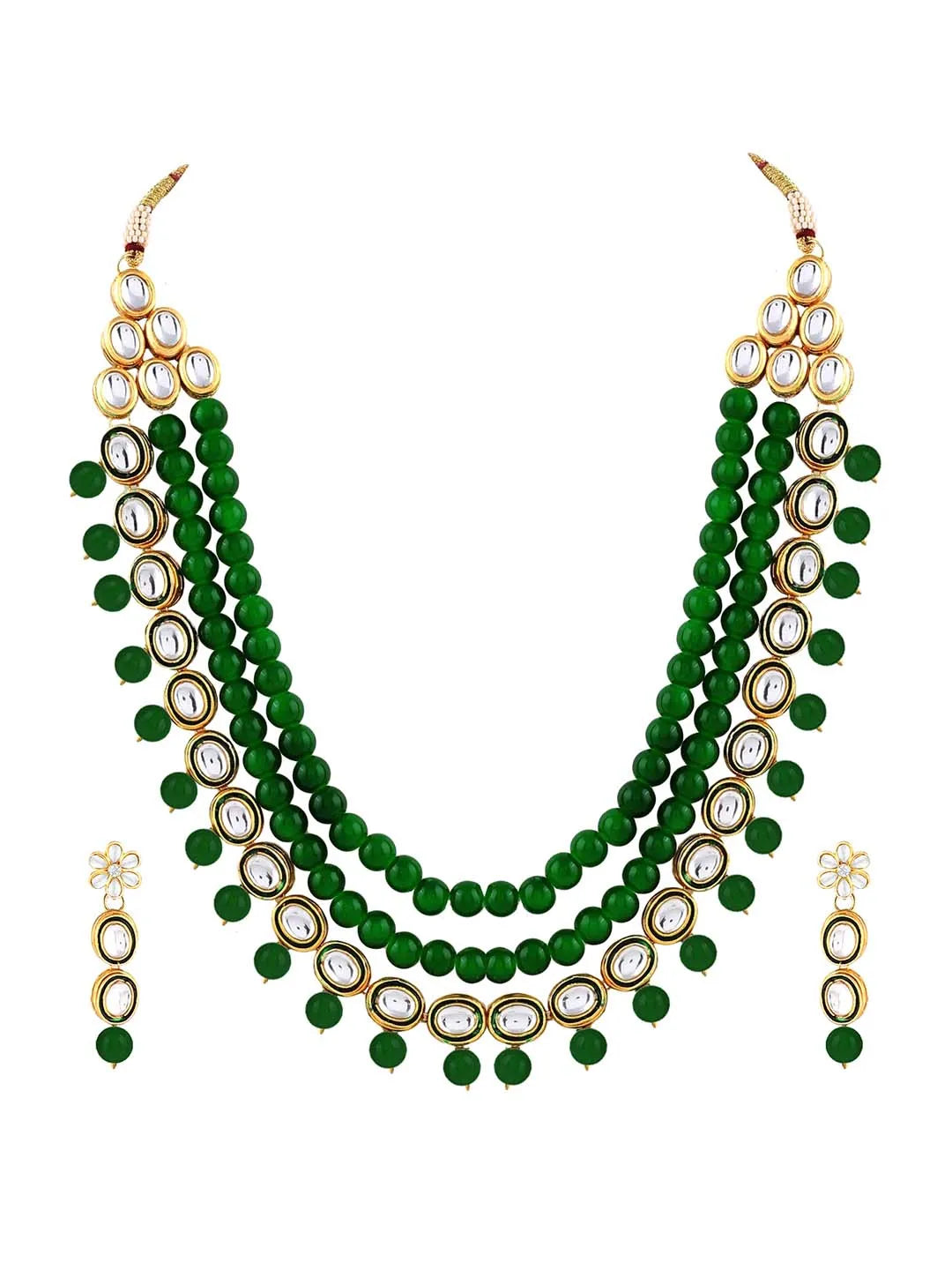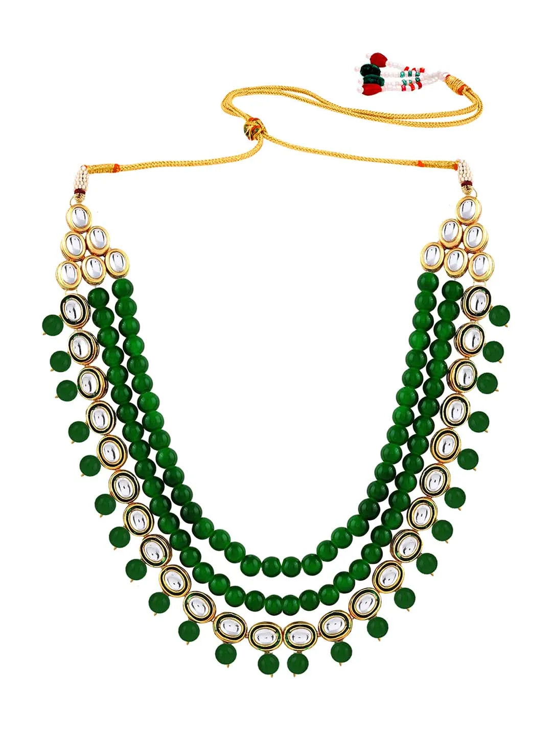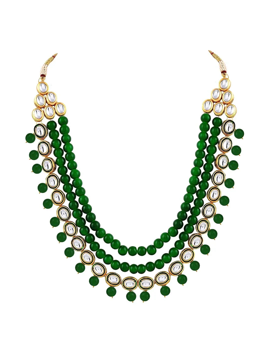 Product Name: Jewelled Fantasy Kundan Pearl Necklace - Green