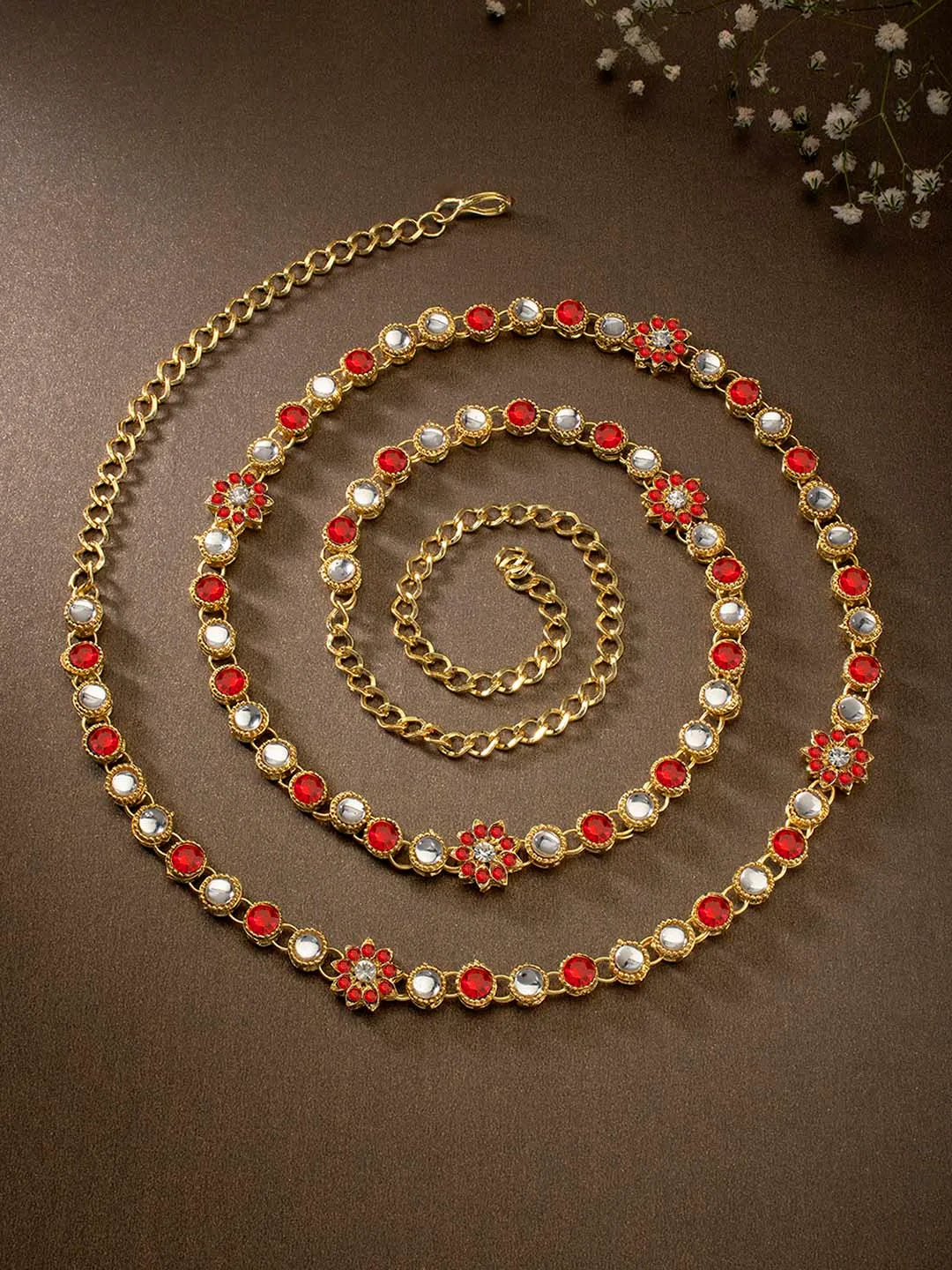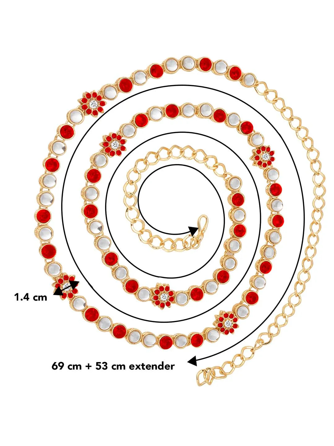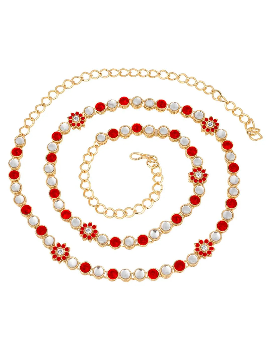 Product Name: Kundan Cascade Exquisite Waist Belt - Red