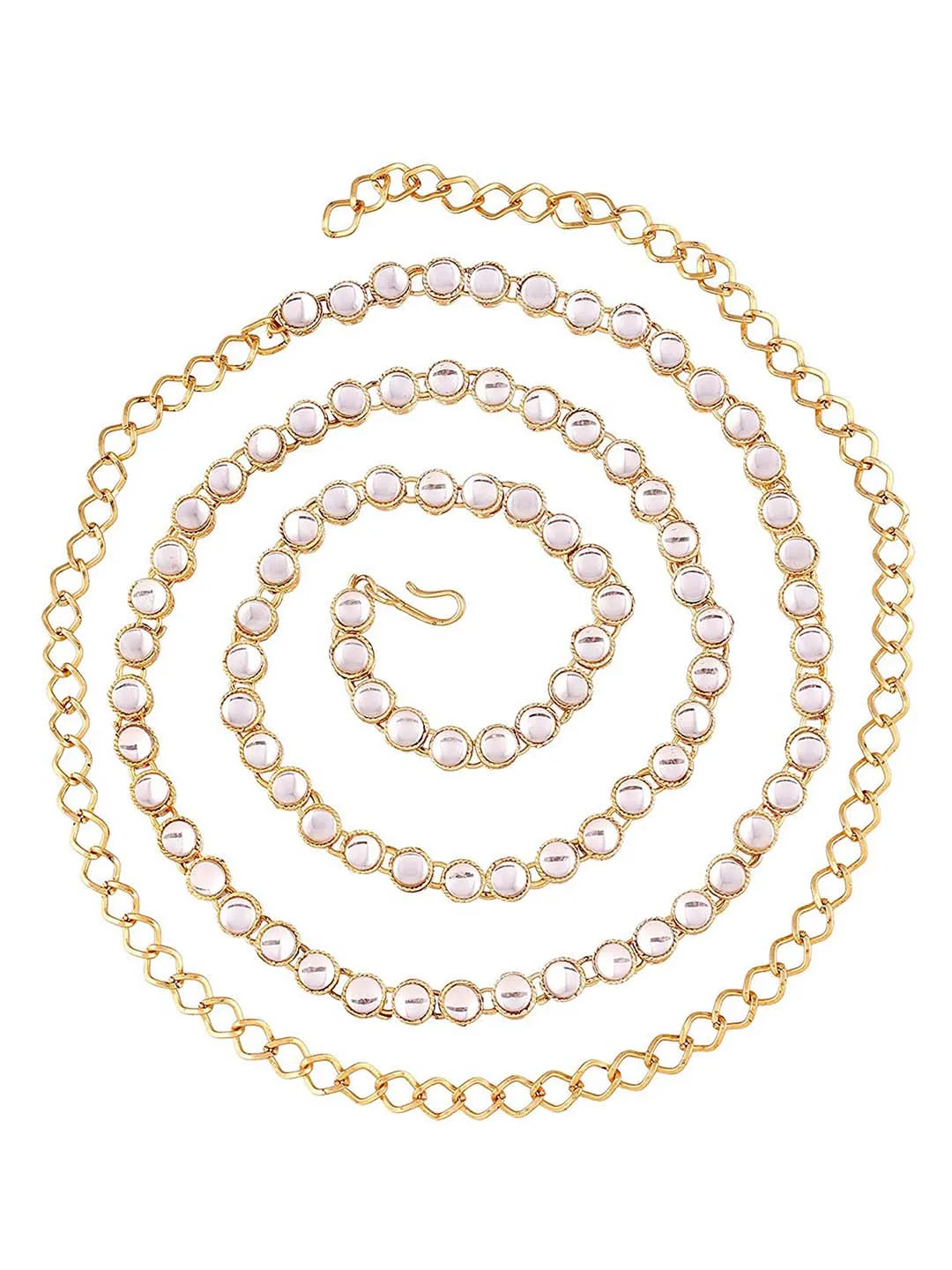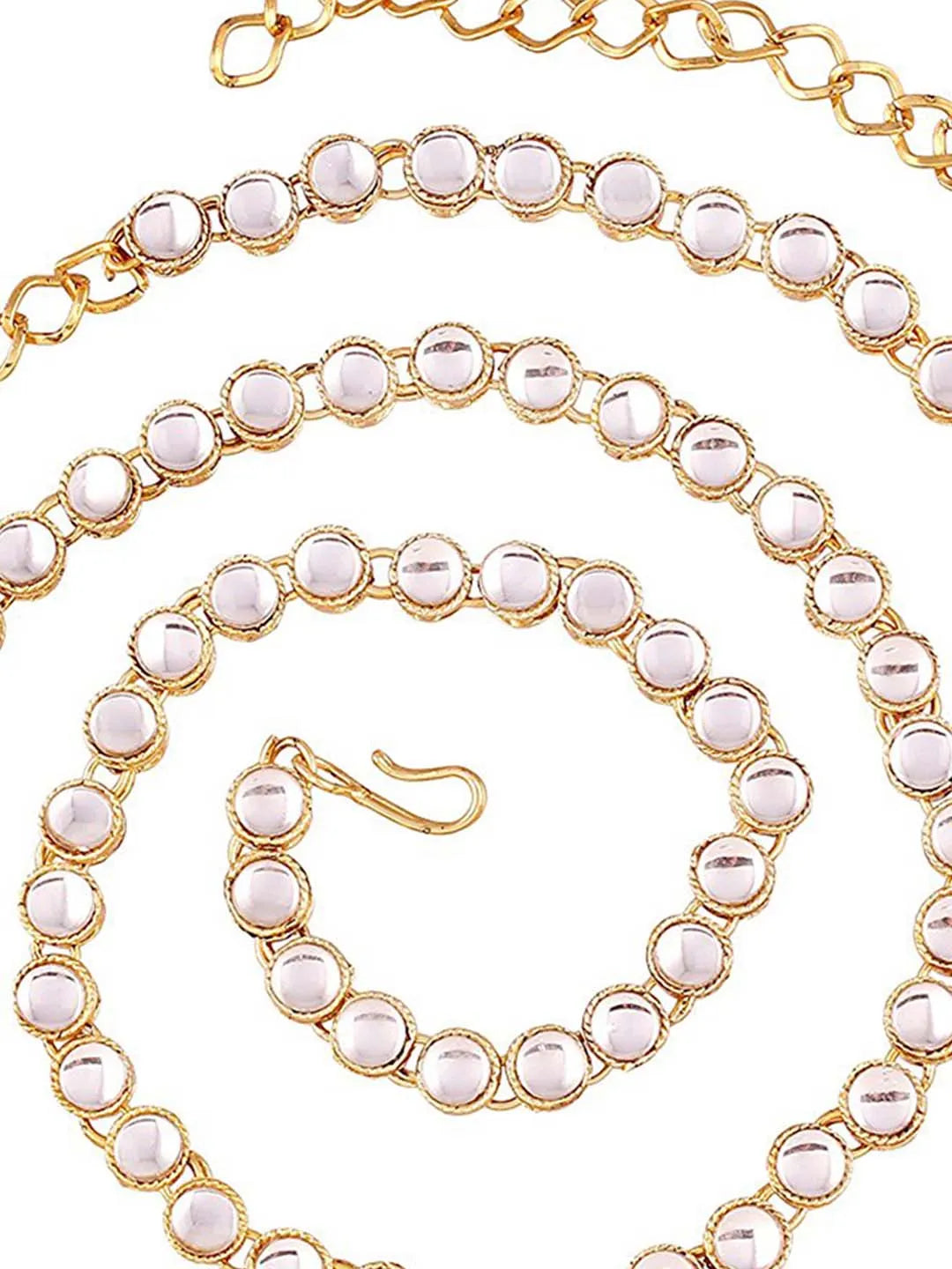 Product Name: Kundan Cascade Exquisite Waist Belt - White