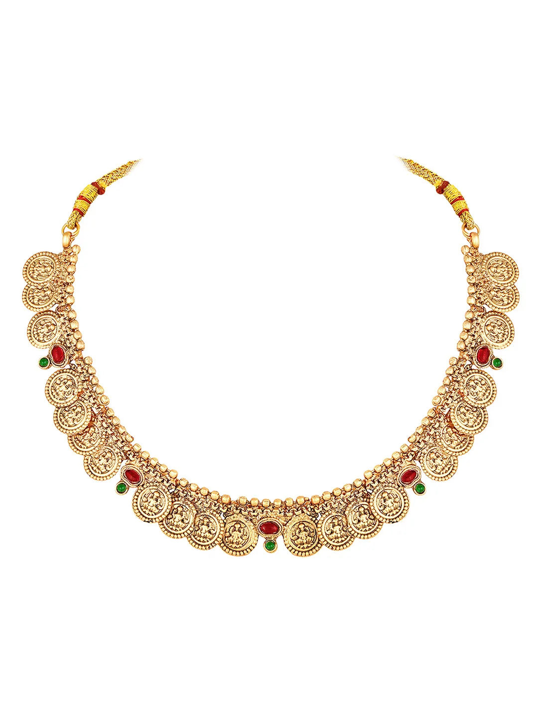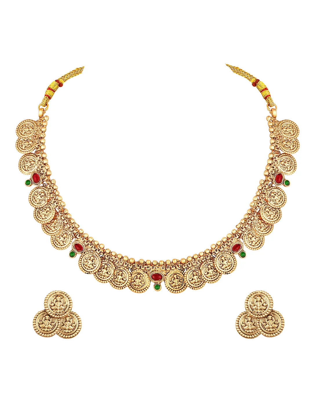 Product Name: Lakshmi Coin Temple Necklace Set - Gold
