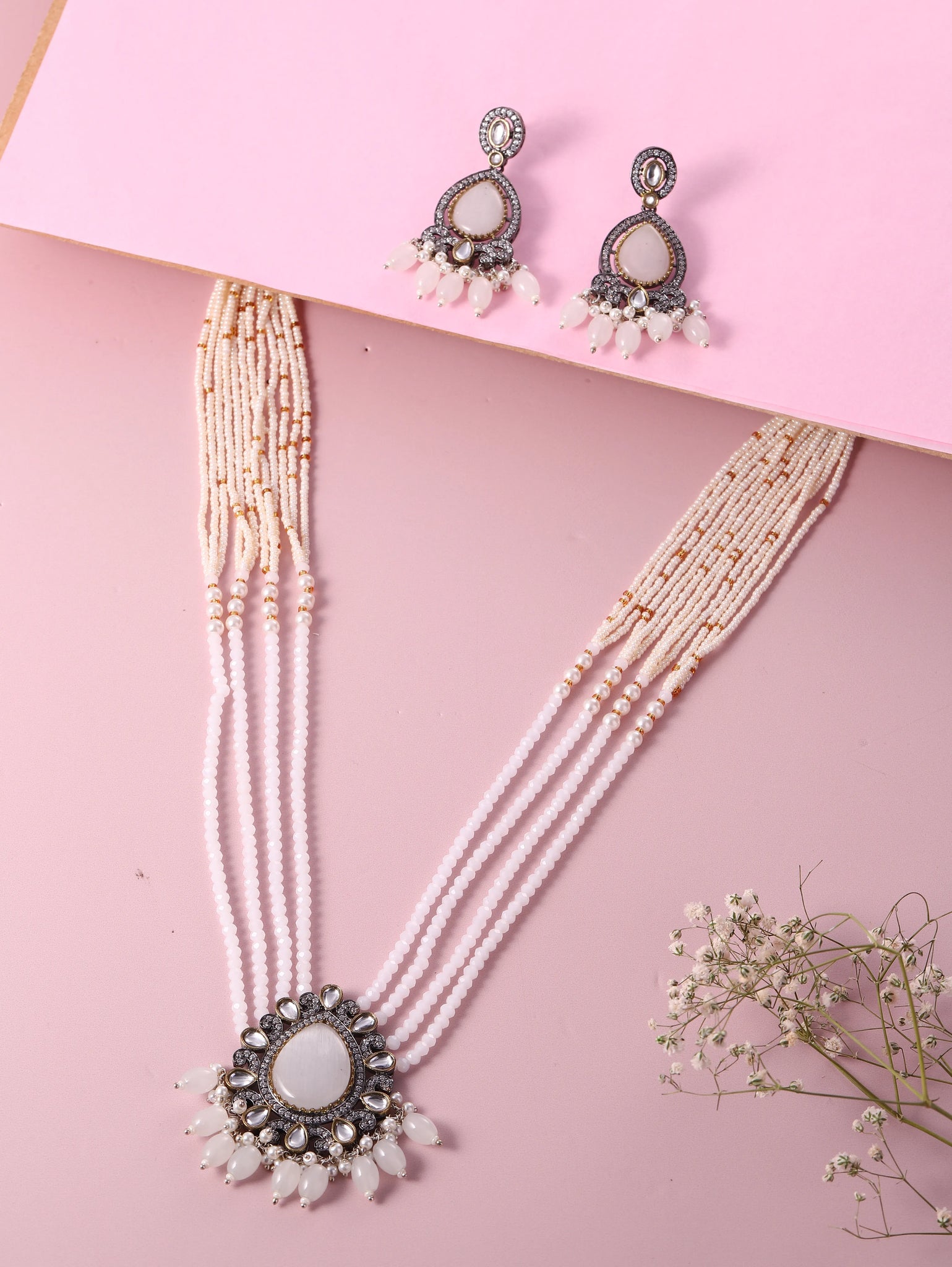 Product Name: Layered Beaded Necklace & Earrings Set - White