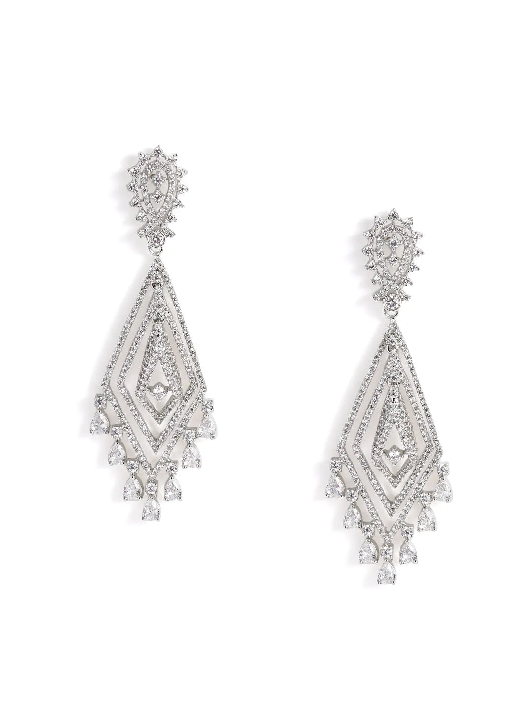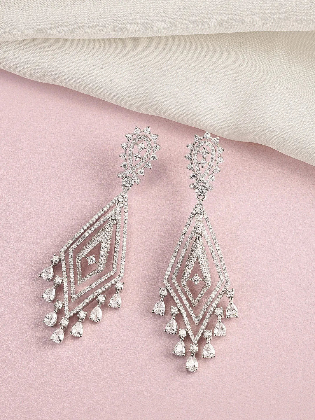 Product Name: Layered Geometric CZ Drop Earrings - Silver