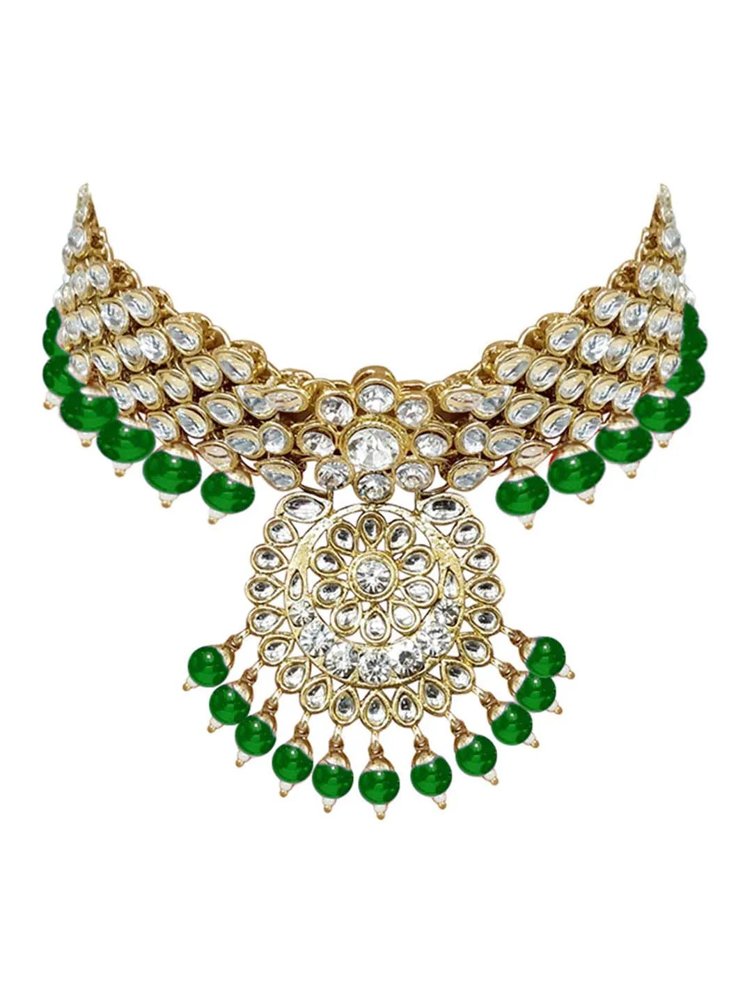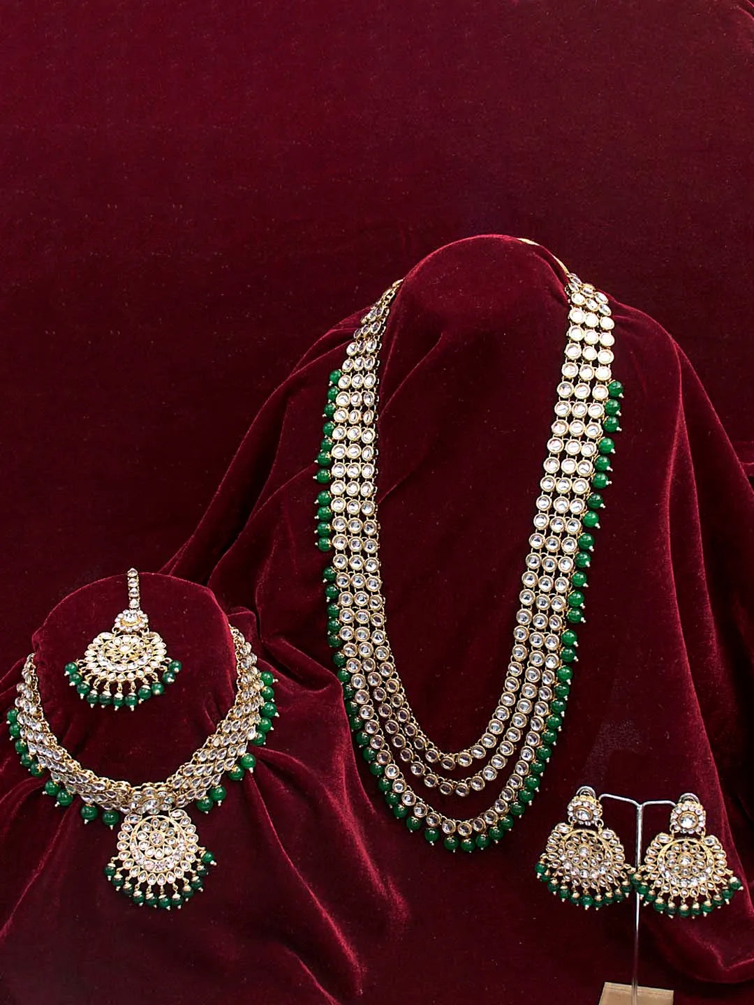 Product Name: Lush Charms Kundan & Beads Bridal Set - Green