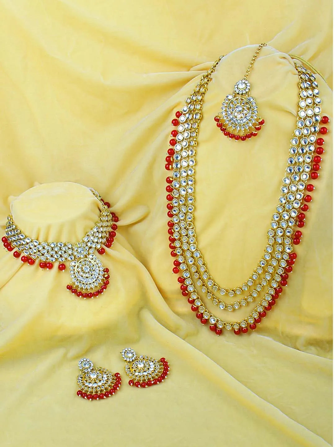 In the Box: 1 Long Necklace 1 ShortChokerNecklace 1 MaangTikka 1 Pair of Earrings
