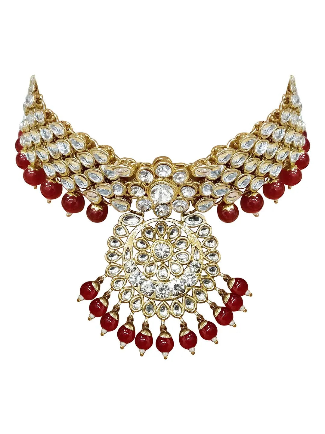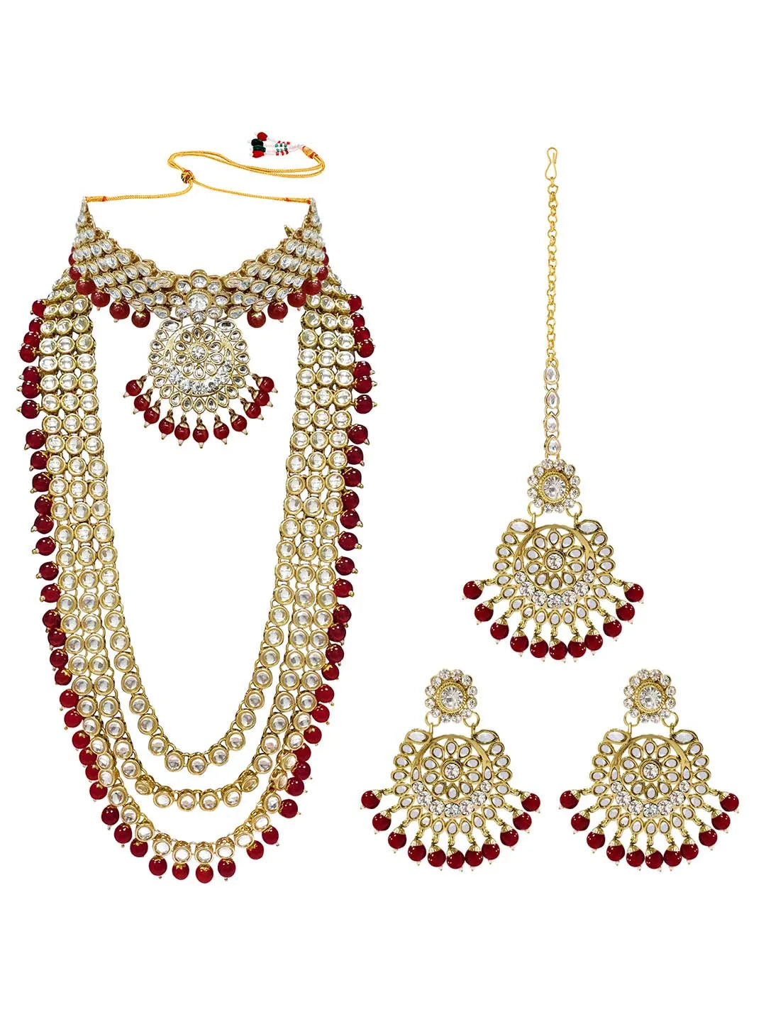 Product Name: Lush Charms Kundan & Beads Bridal Set - Maroon