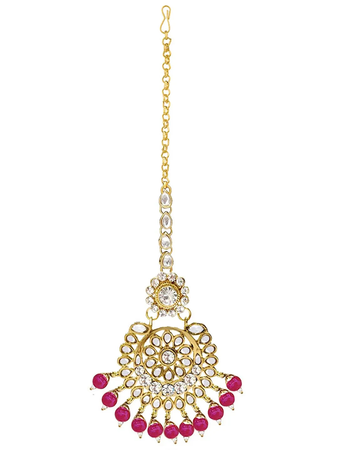 Product Name: Lush Charms Kundan & Beads Bridal Set - Rani Pink