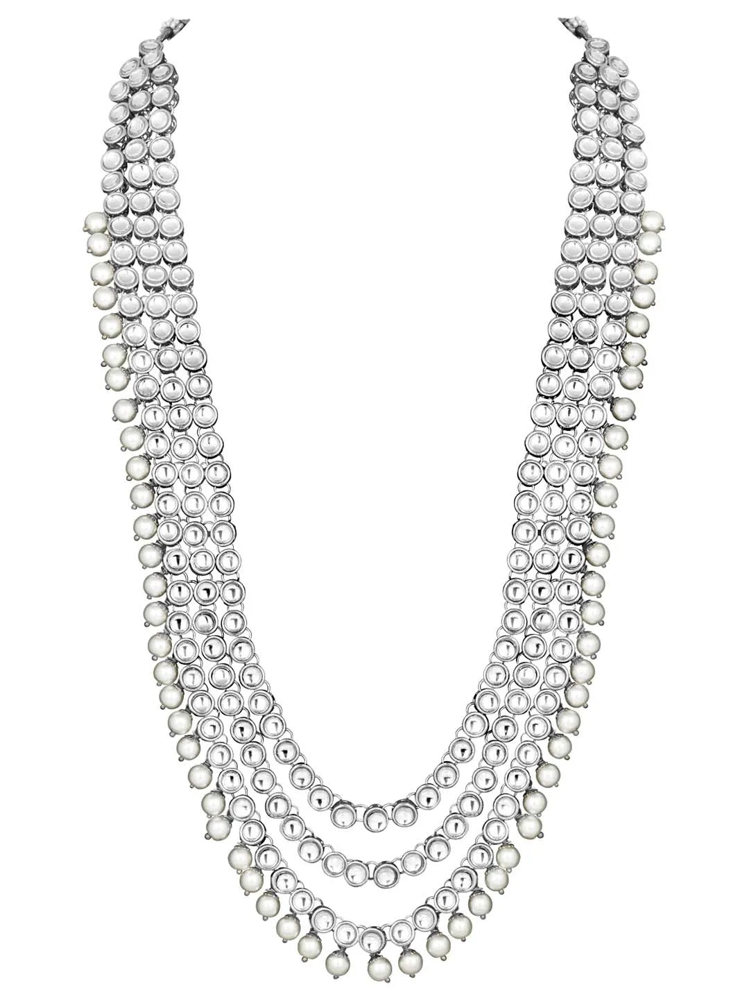 Product Name: Lush Charms Kundan & Beads Bridal Set - Rhodium White