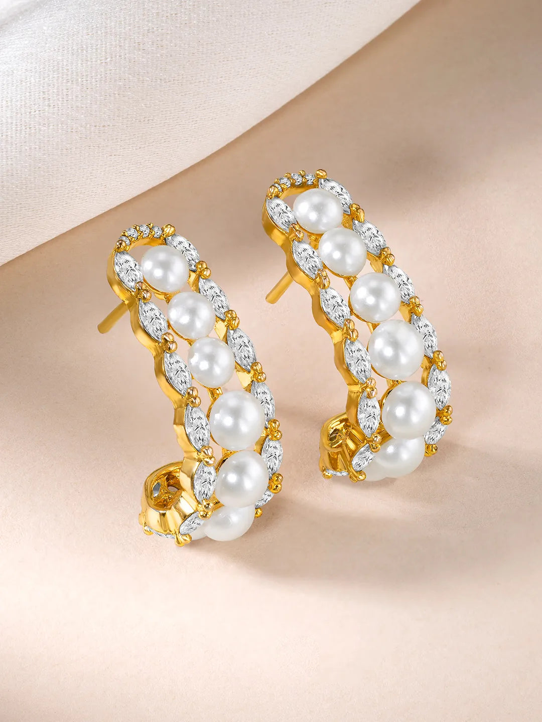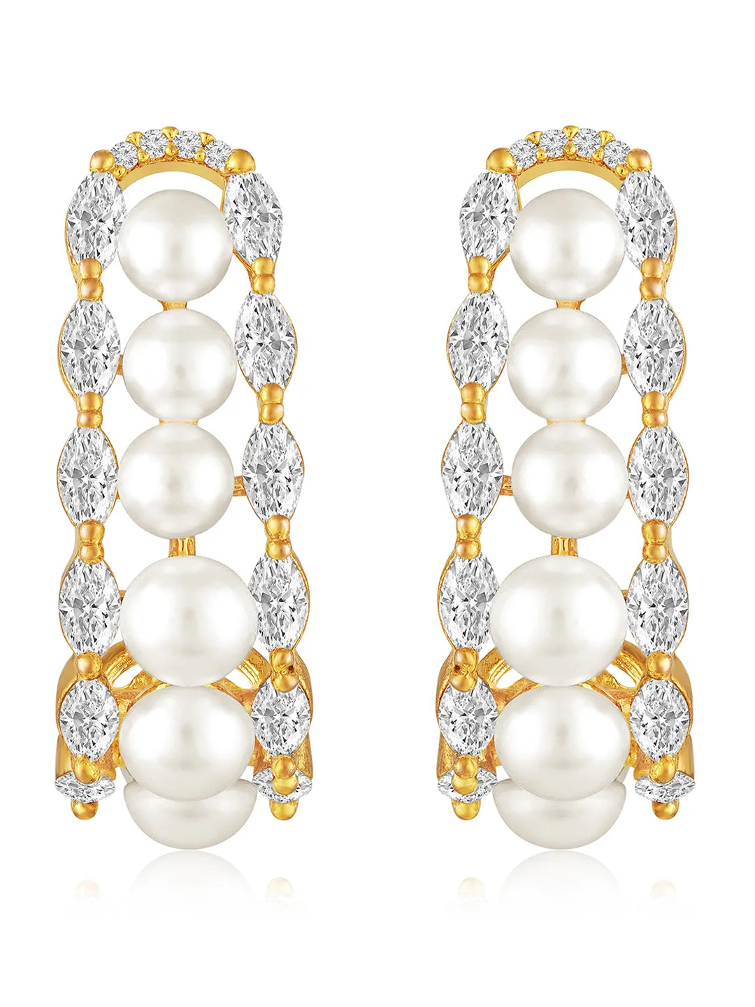 Product Name: Luxe Pearl & CZ Half Hoop Earrings
