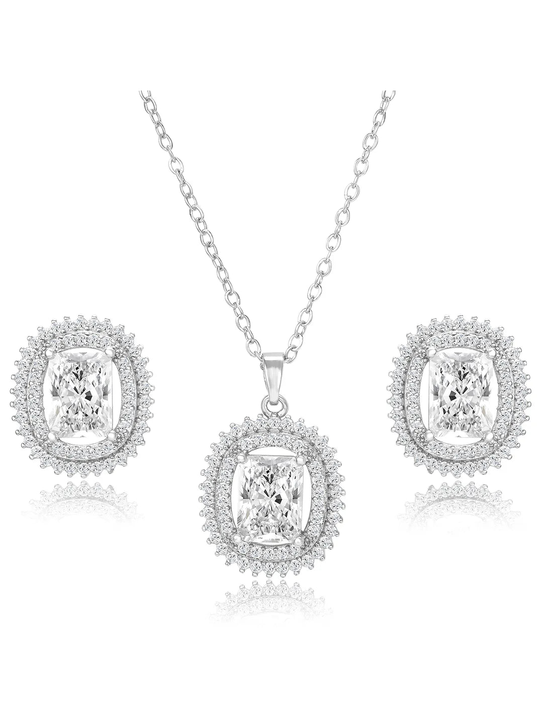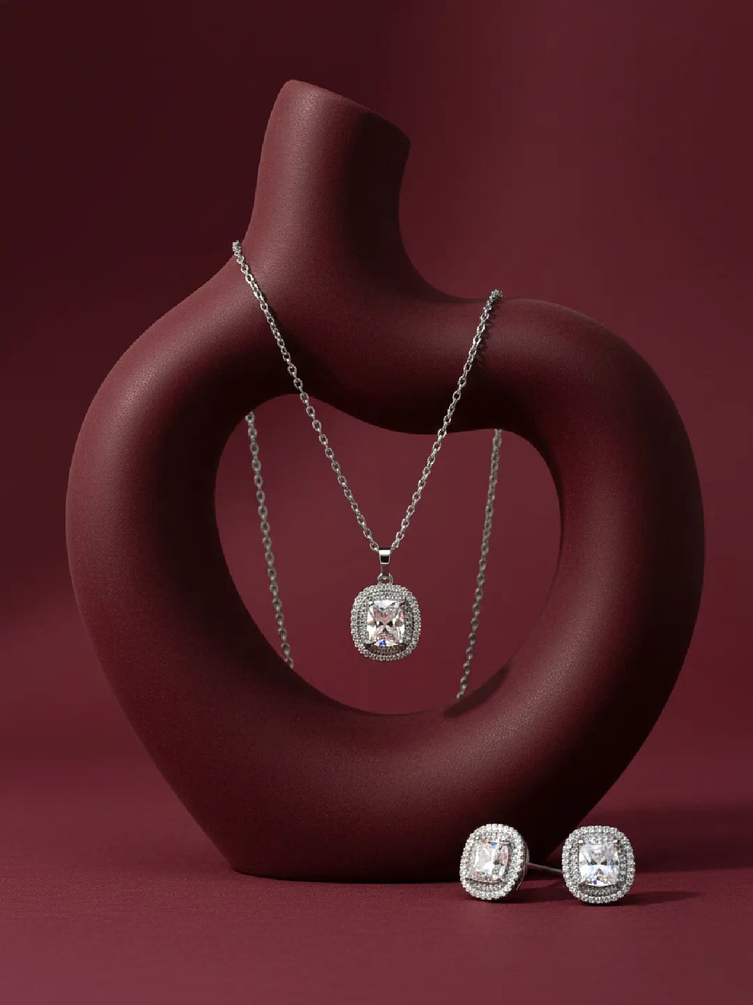 Product Name: Luxe Silver-Plated CZ Cushion Pendant Set