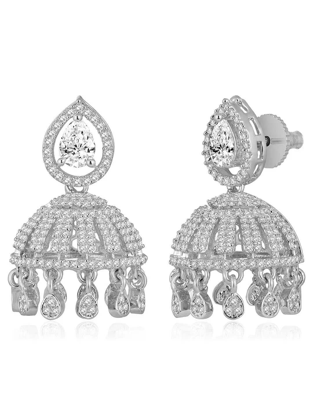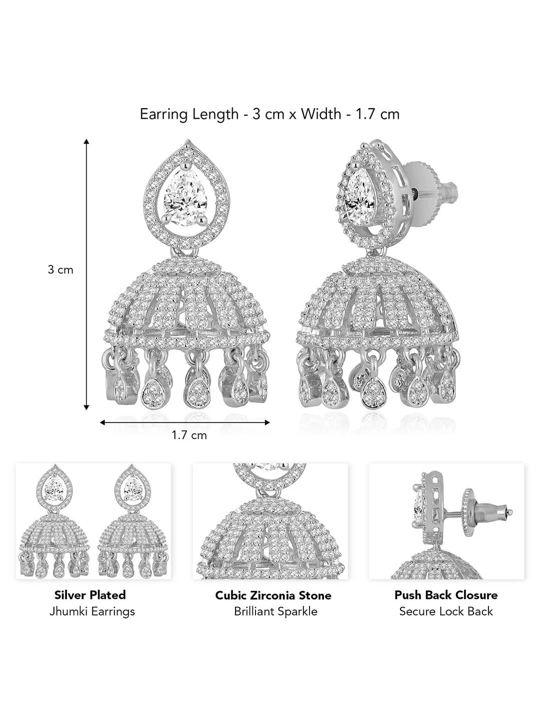 Product Name: Luxurious Elegance CZ Jhumki Earrings - Silver