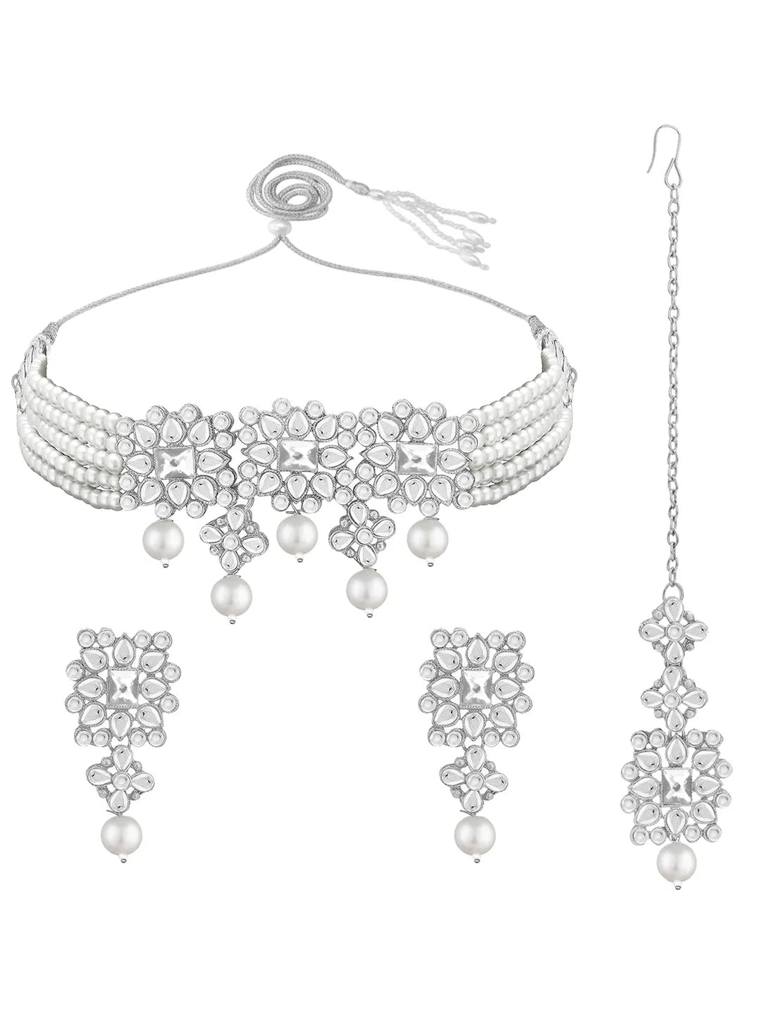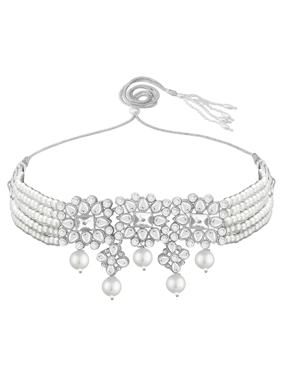 Product Name: Luxurious Lush Pearl Choker Set - Rhodium White