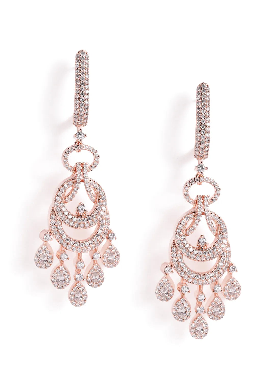 Product Name: Luxurious Pave CZ Teardrop Earrings - Rose Gold