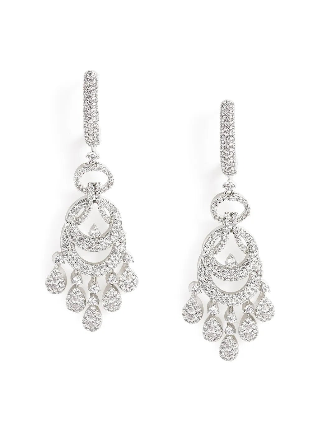Product Name: Luxurious Pave CZ Teardrop Earrings - Silver