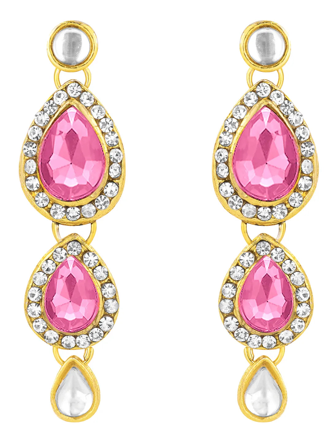 Product Name: Majesty Kundan Long Necklace Set - Pink