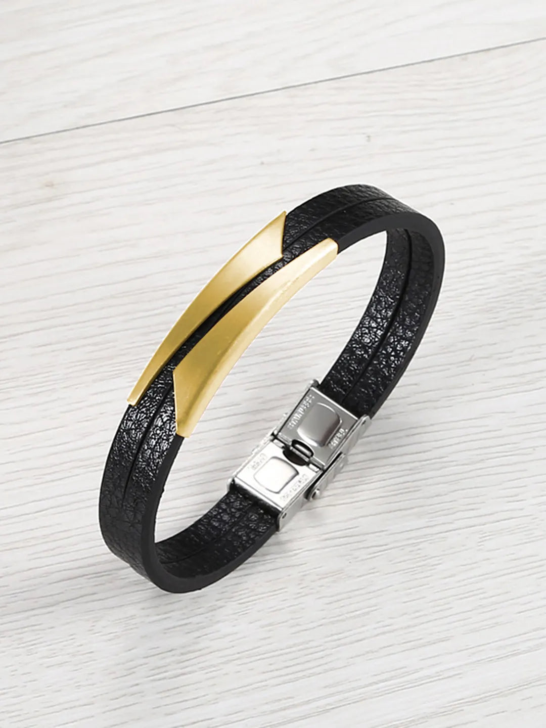 Product Name: Men’s Black Leather Gold Accent Bracelet