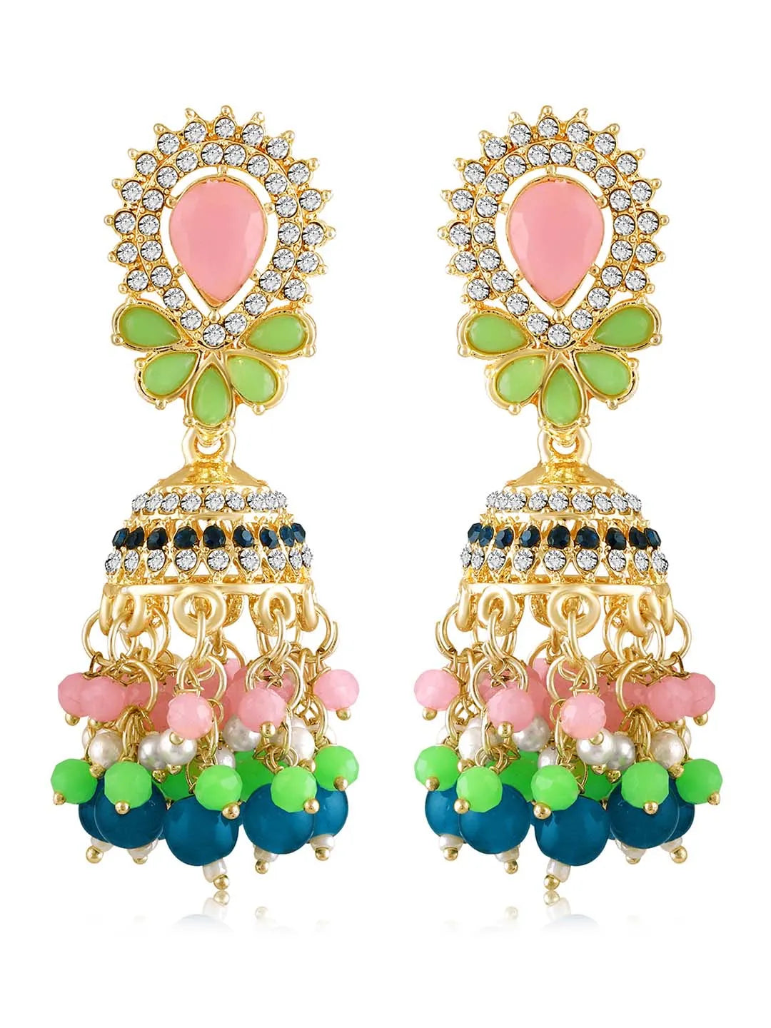 Product Name: Mint Rosy Marine Charm Jhumki Earrings