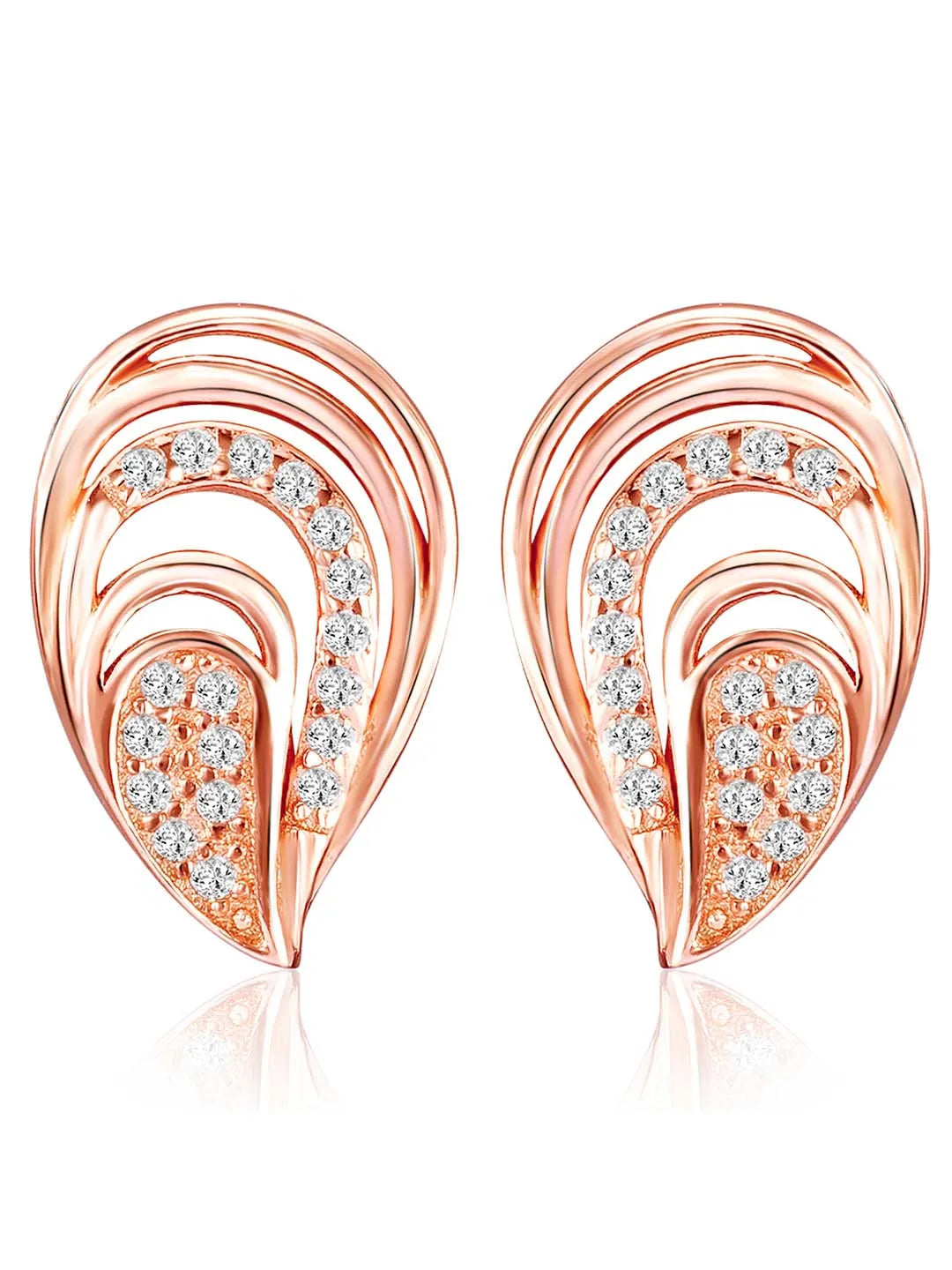 Product Name: Modern Leaf Design CZ Rose Gold Stud Earrings