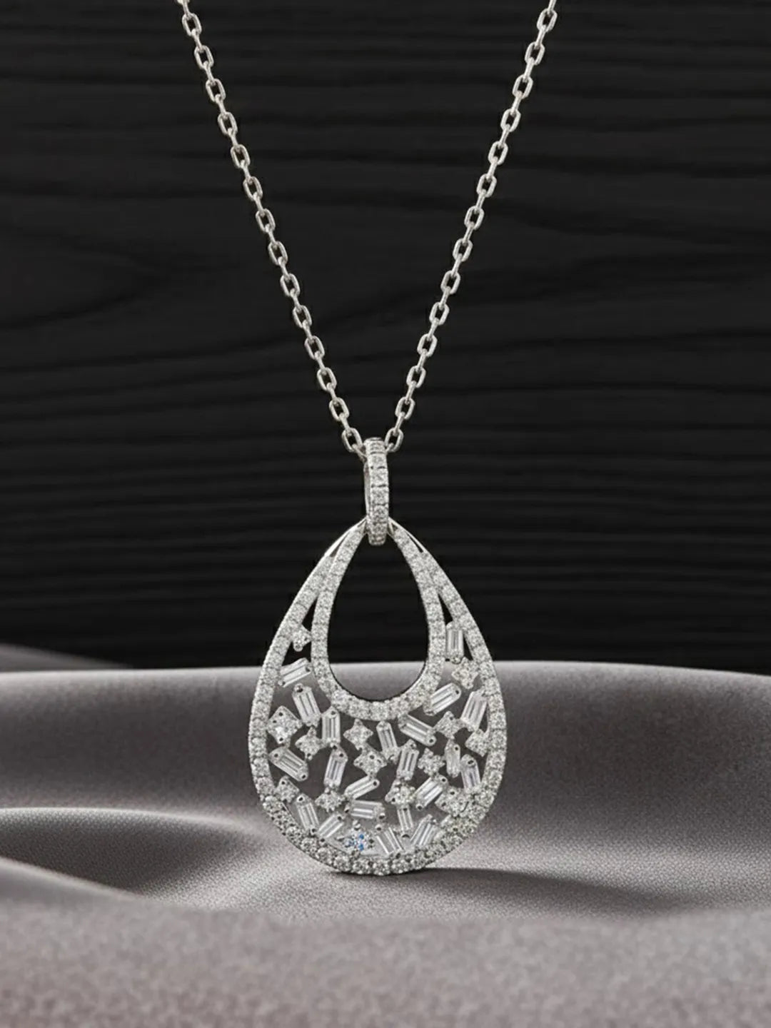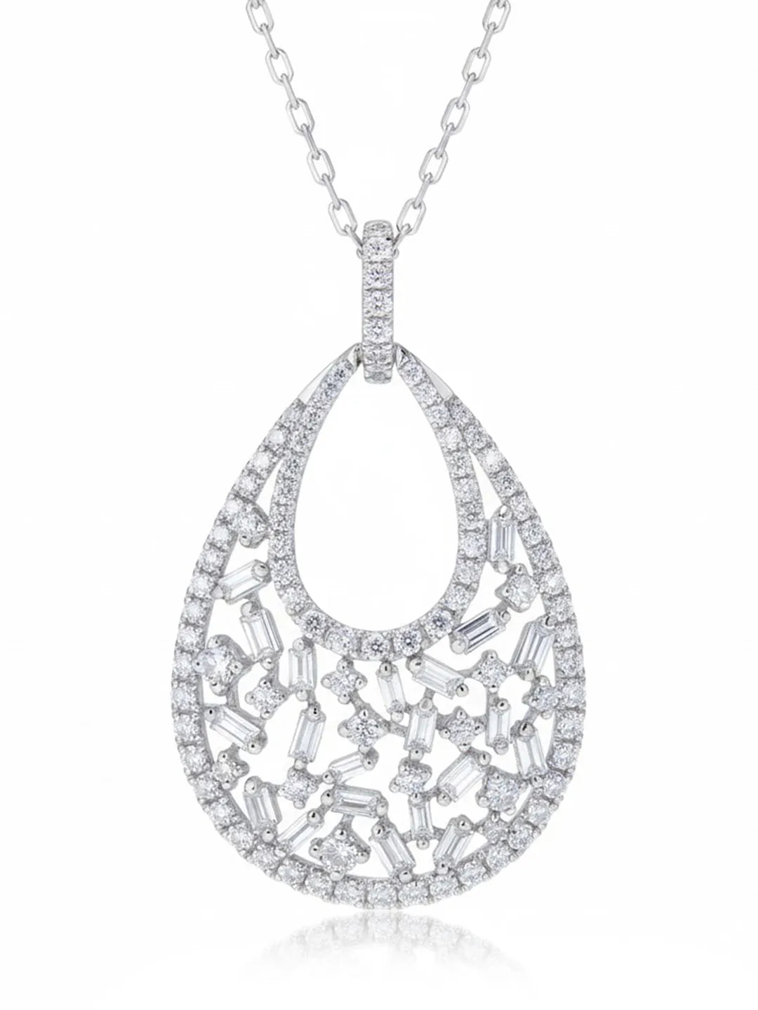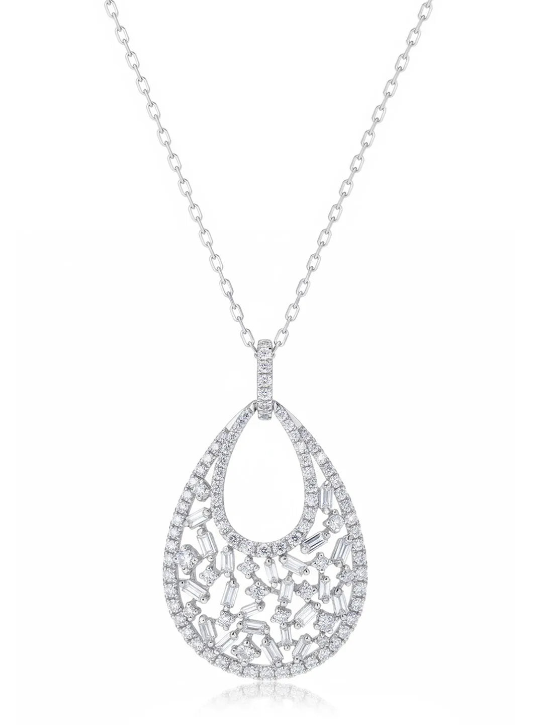Product Name: Modern Teardrop Halo Silver Pendant Necklace
