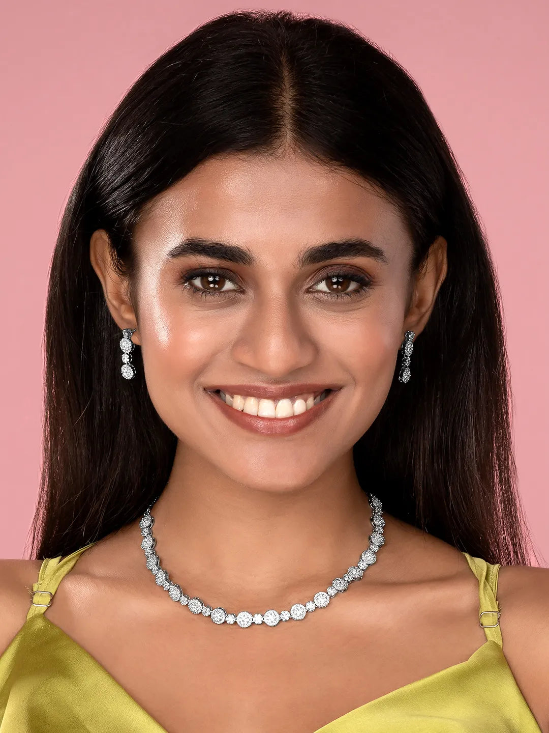 Product Name: Opulent CZ Round Cluster Necklace Set
