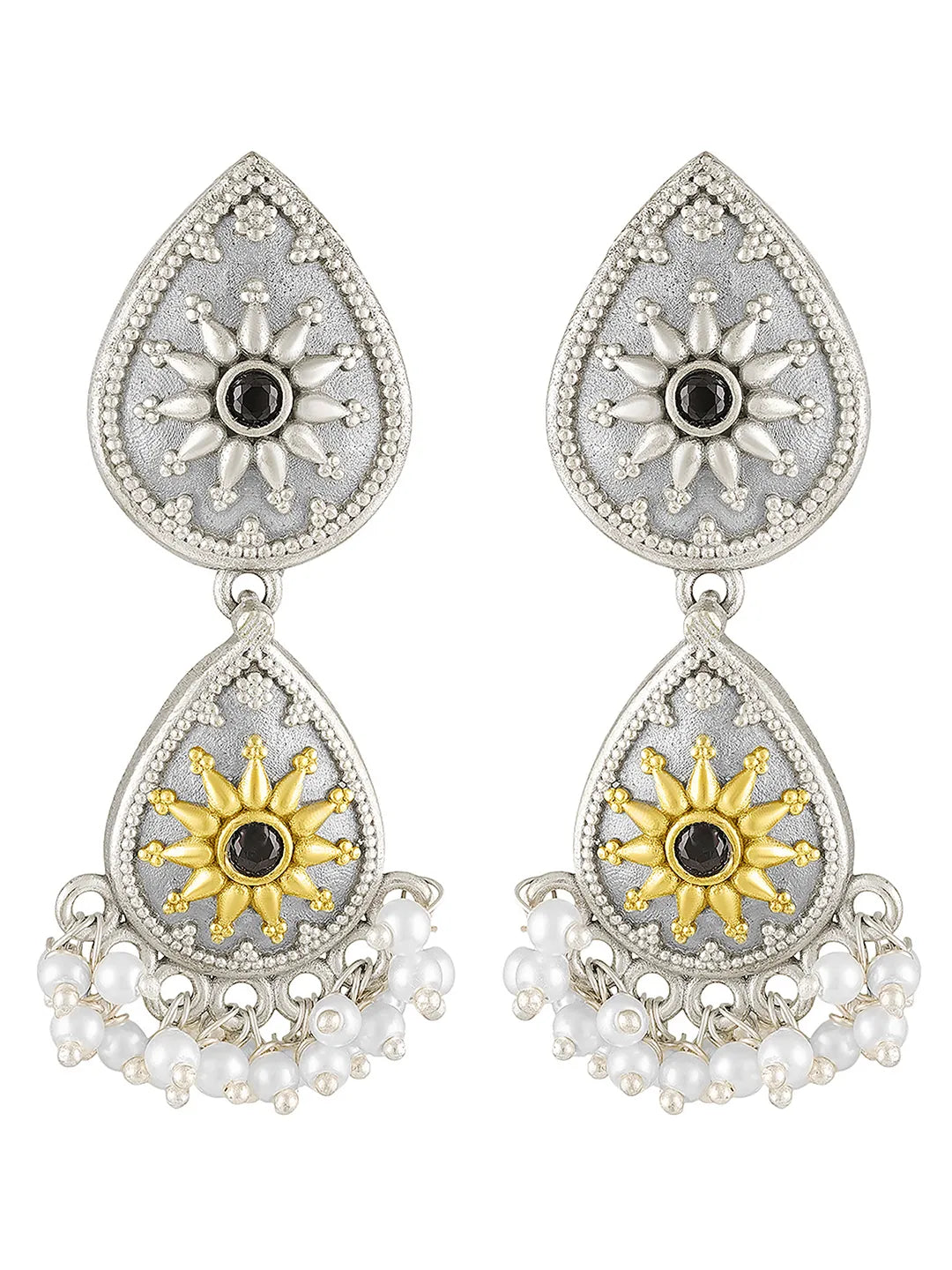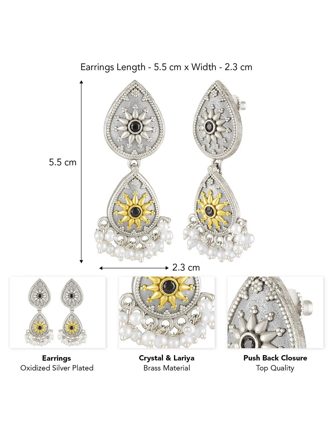 Product Name: Oxidized Earrings with Teardrop Pearls