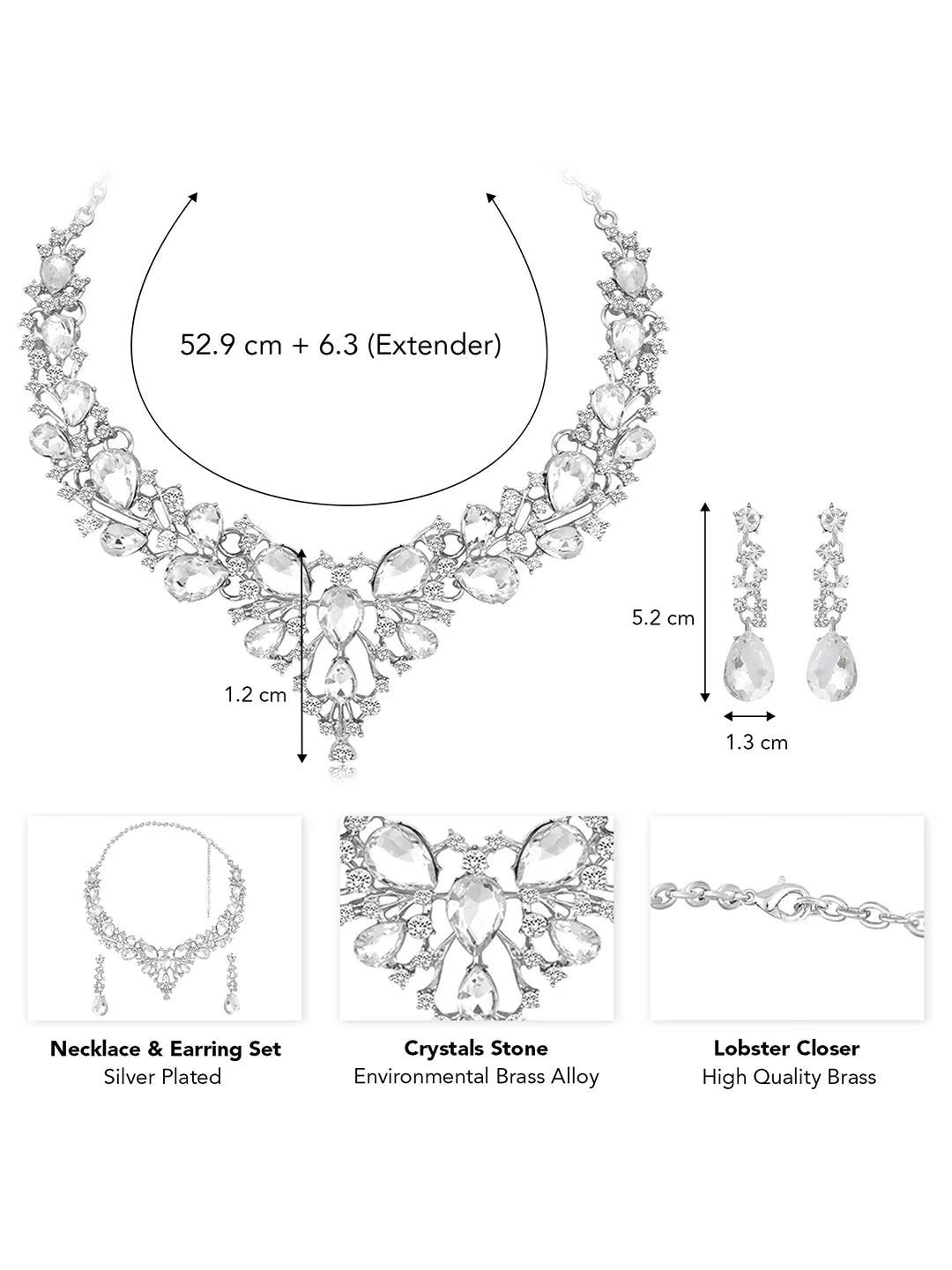 Dimensions: Necklace Length: 52.9 cm + 6.3 cm (Extender) Necklace Width: 4.1 cm Earrings Length: 5.2 cm Earrings Width: 1.3 cm