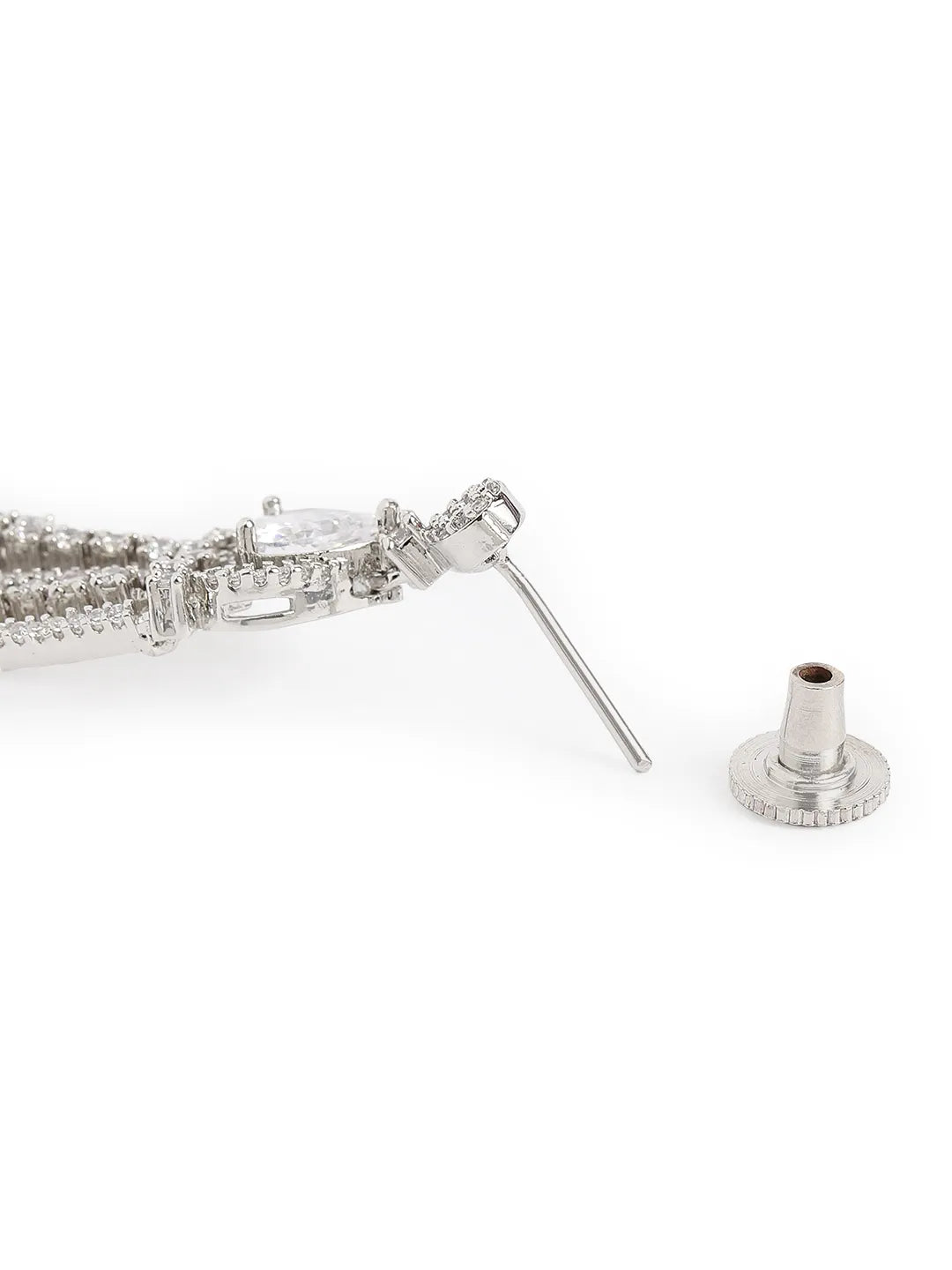Product Name: Pear Stone CZ Tassel Drop Earrings - White