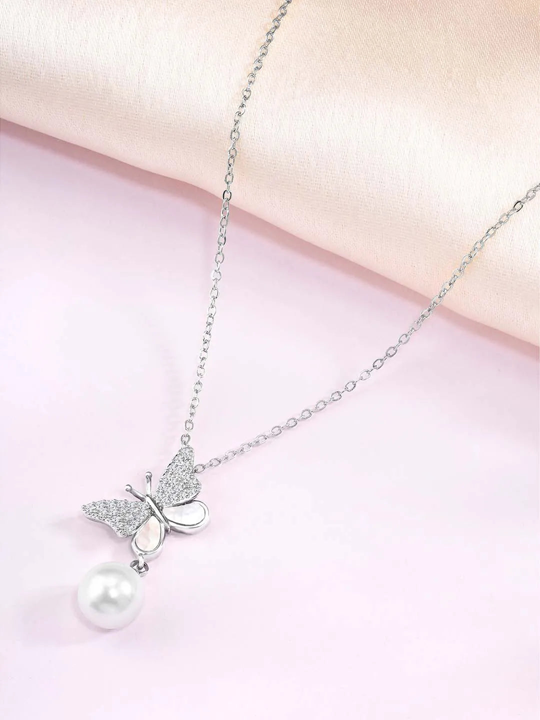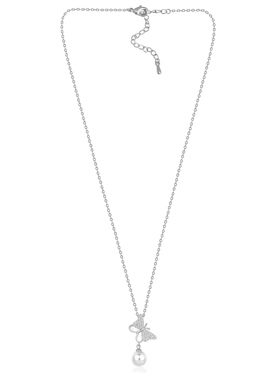 Product Name: Pearl & CZ Flutter Pendant Chain - Silver
