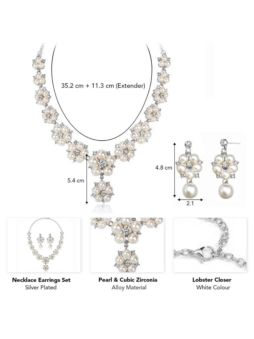 Dimensions: Necklace Length: 35.2 cm + 11.3 cm (Extender) Necklace Width: 5.4 cm Earrings Length: 4.8 cm Earrings Width: 2.1 cm
