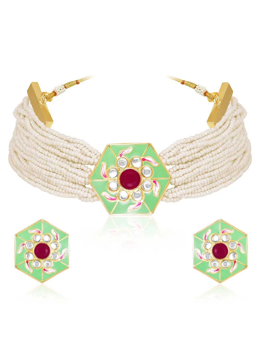 Dimensions: Necklace Length: 20.4 cm x Width: 2.7 cm; Earrings Length: 1.8 cm x Width: 1.3 cm; Weight: 37.56 grams