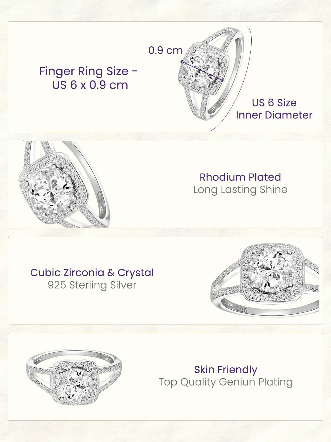 Dimensions: Ring Size - US 6 Ring Width - 0.9 cm