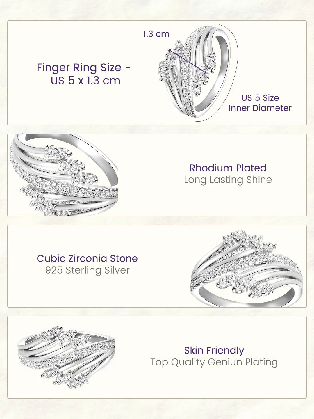 Dimensions: Ring Size - US 5 Ring Width - 1.3 cm