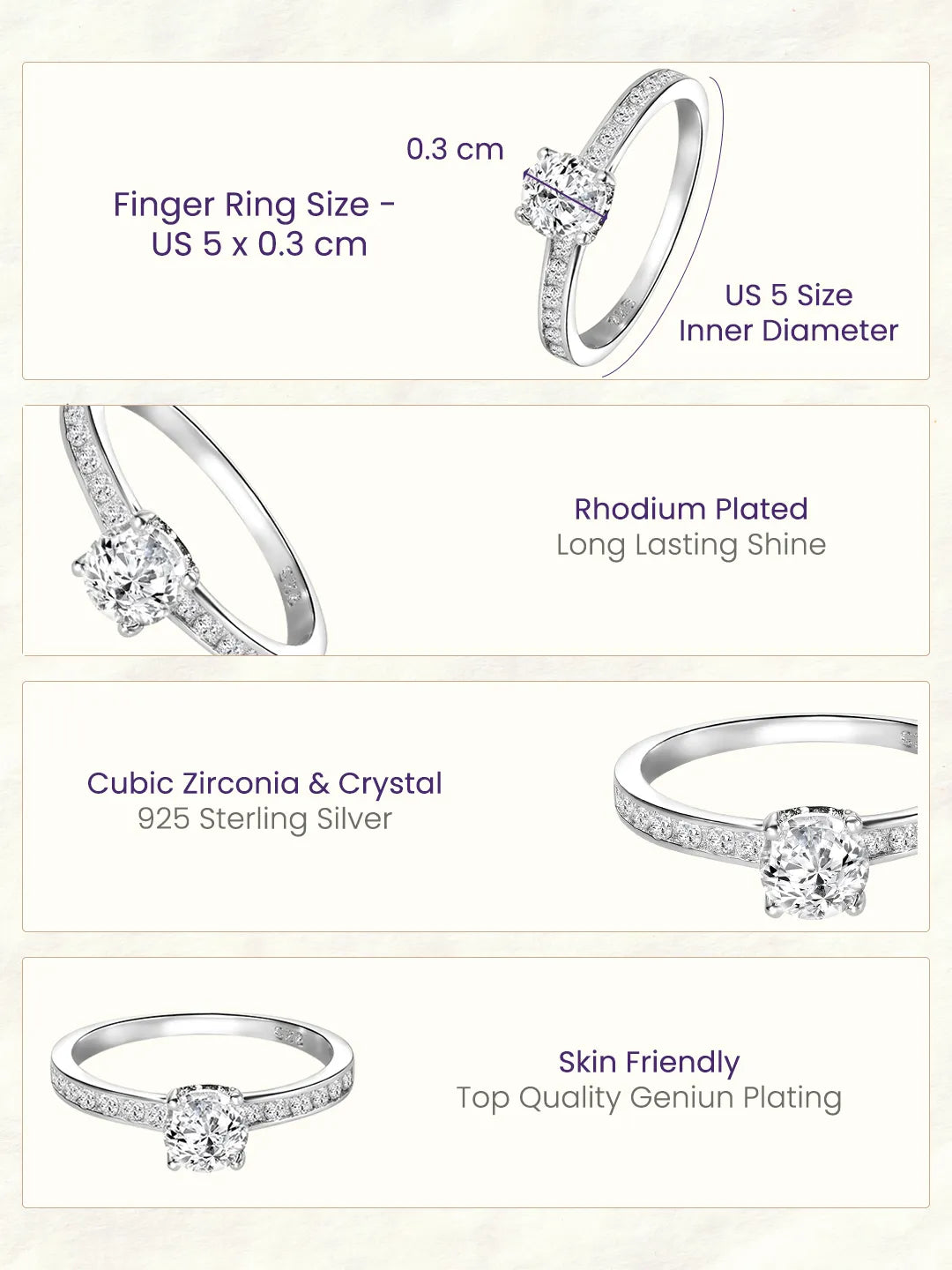 Product Name: Peora Classic Solitaire 925 Sterling Silver Ring
