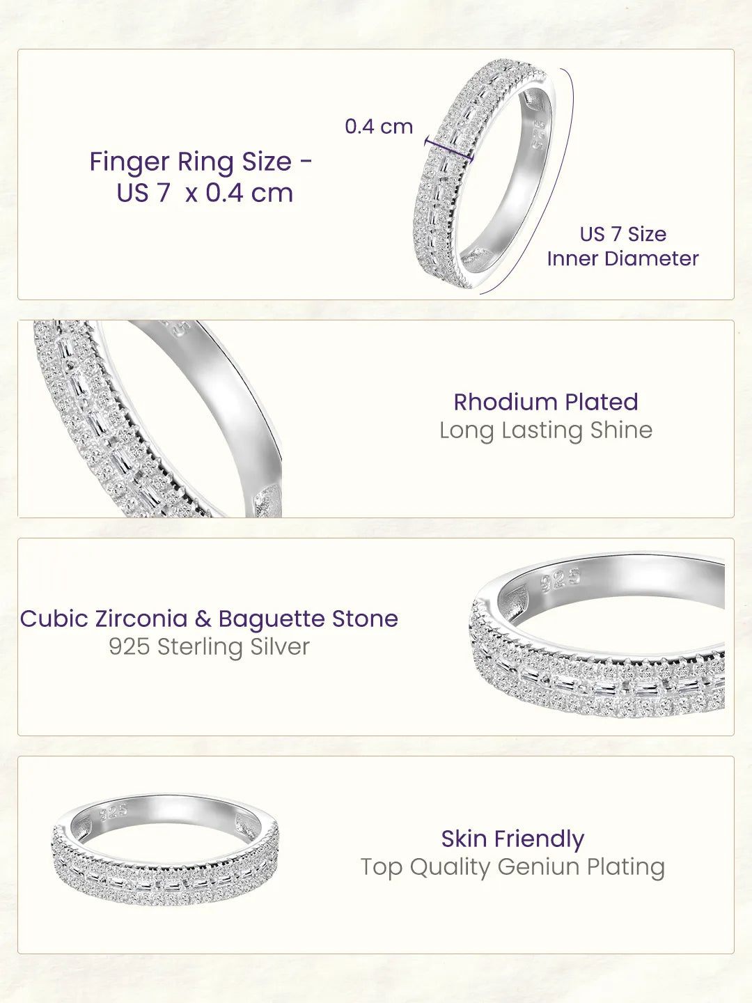 Dimensions: Ring Size - US 7 Ring Width - 0.4 cm