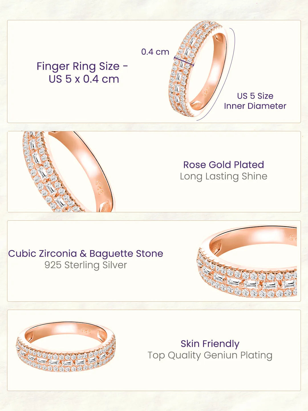 Dimensions: Ring Size - US 6 Ring Width - 0.4 cm