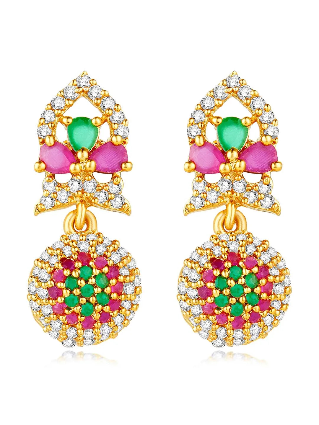 Product Name: Perfection Sparkle CZ Drop Earrings - Rani Pink Green