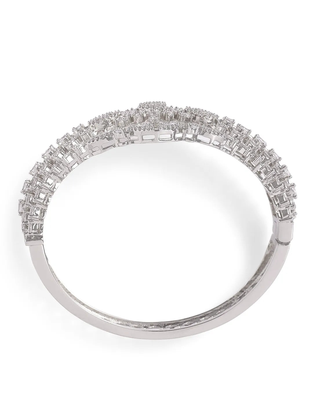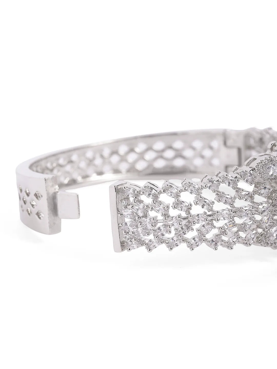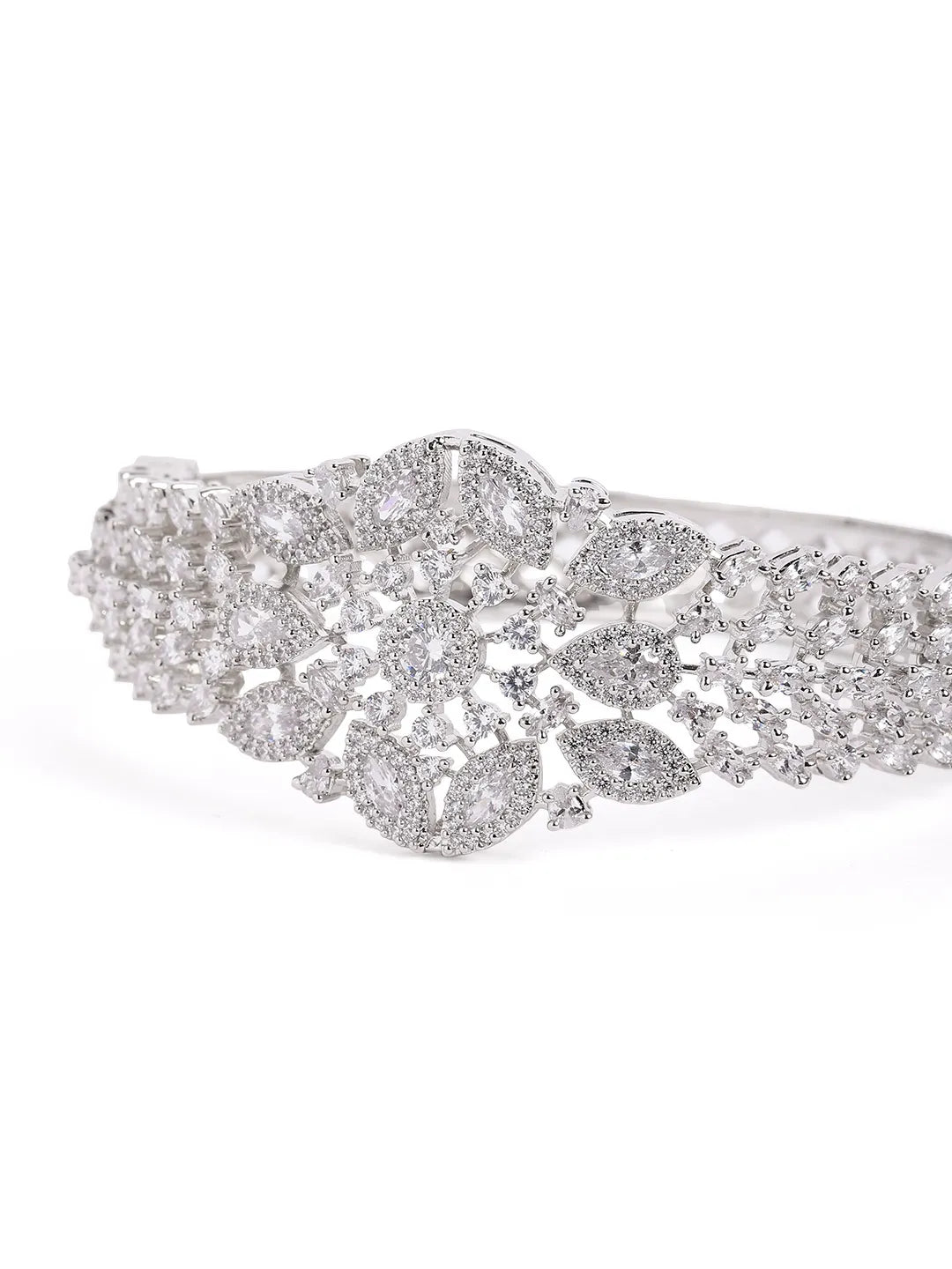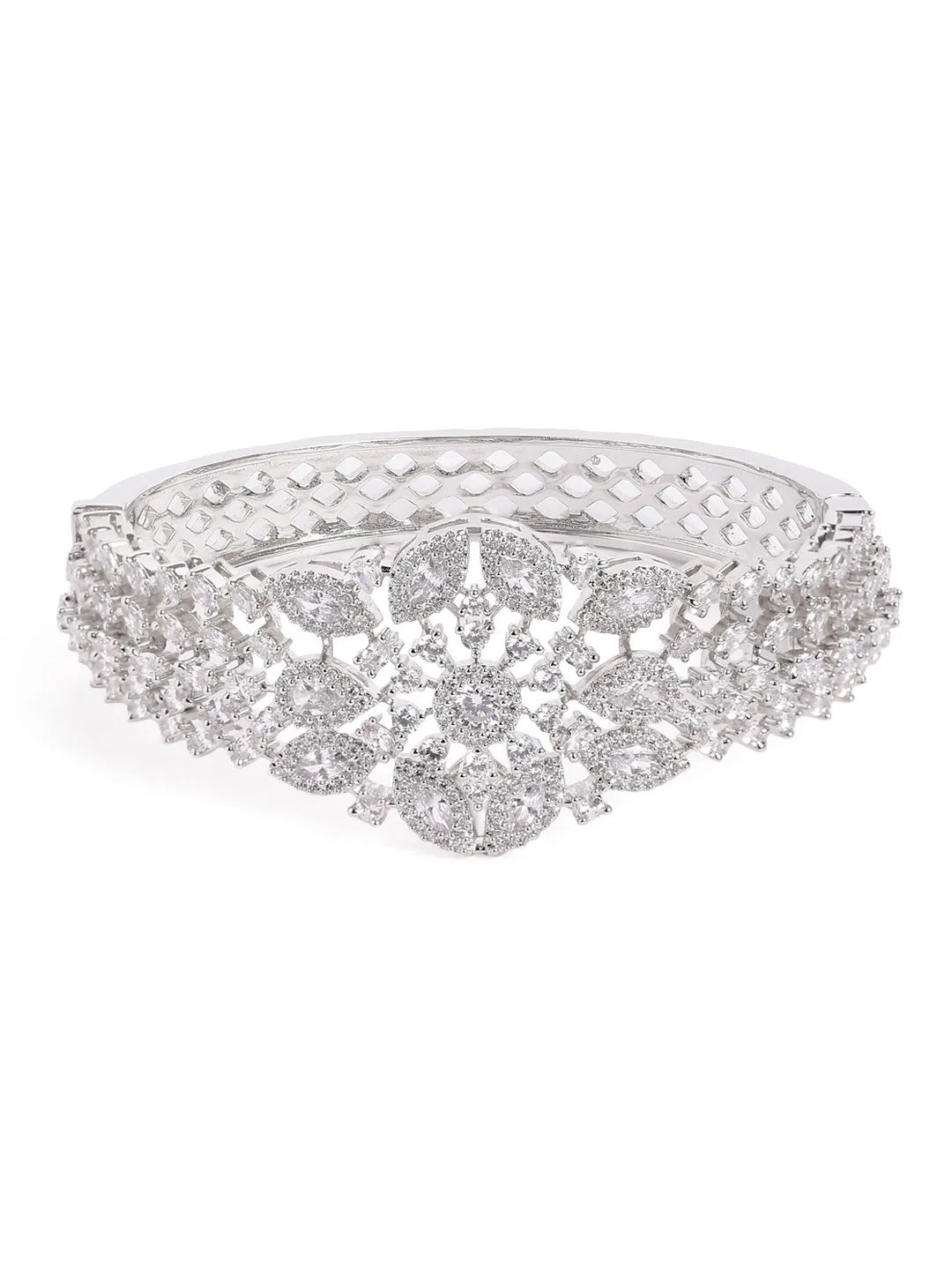 Product Name: Petal Dynasty CZ Studded Bangle - Silver