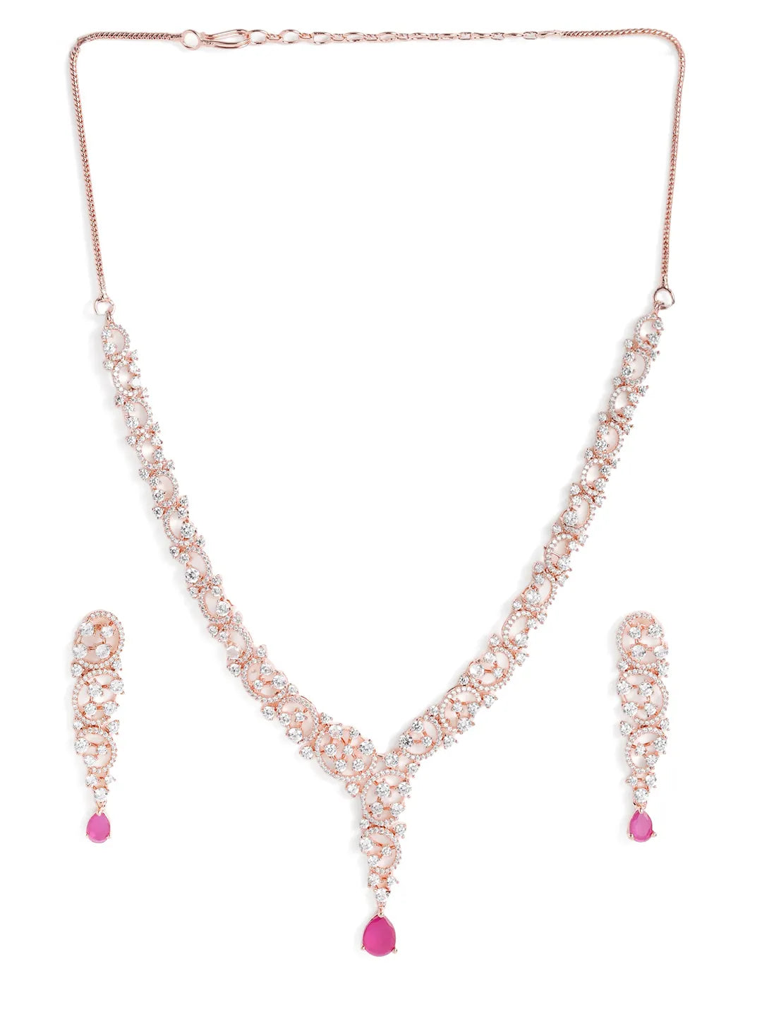 Product Name: Radiant Crystal Sparkling Necklace Set - Rani Pink