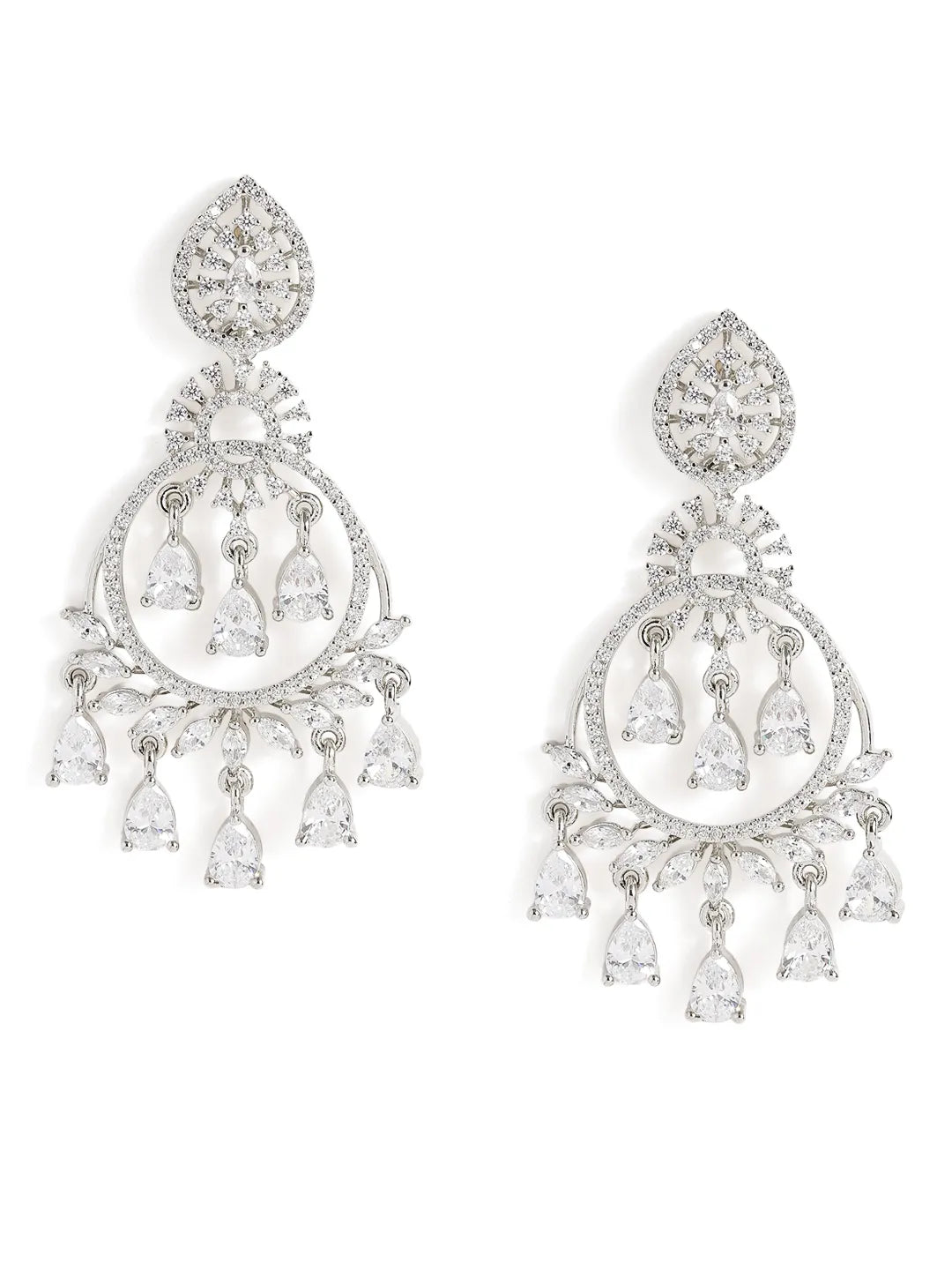 Product Name: Radiant CZ Teardrop Chandelier Earrings - Silver