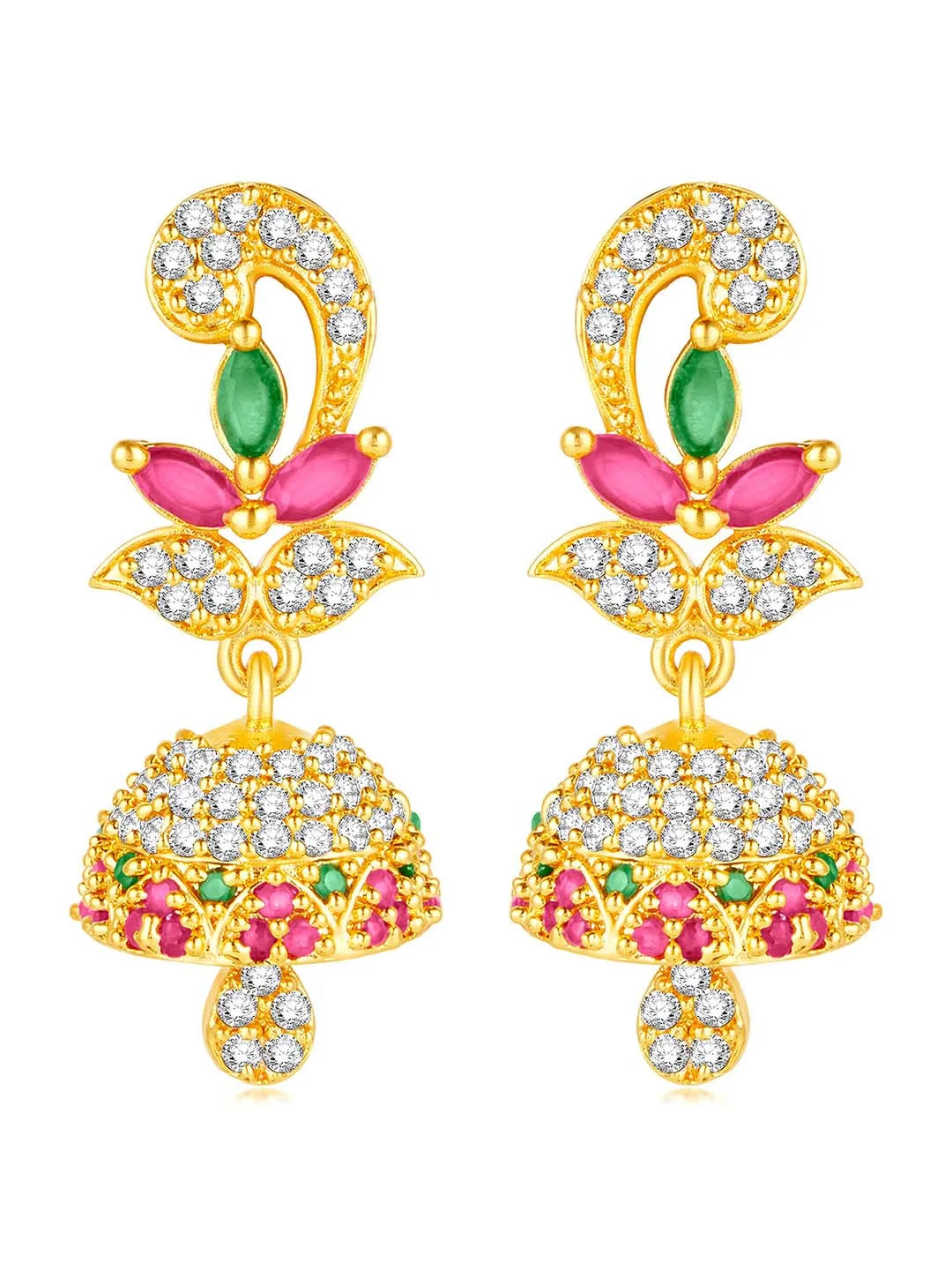 Product Name: Radiant Glow Blush Elegance Jhumki - Rani Pink Green