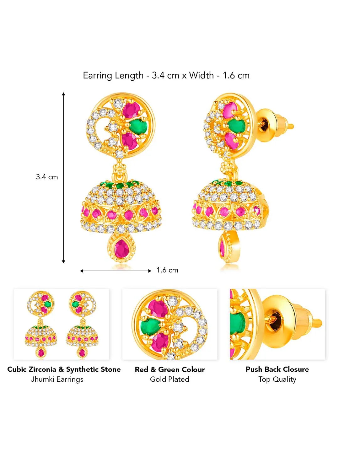 Product Name: Radiant Glow: CZ Jhumki Collection - Rani Pink Green