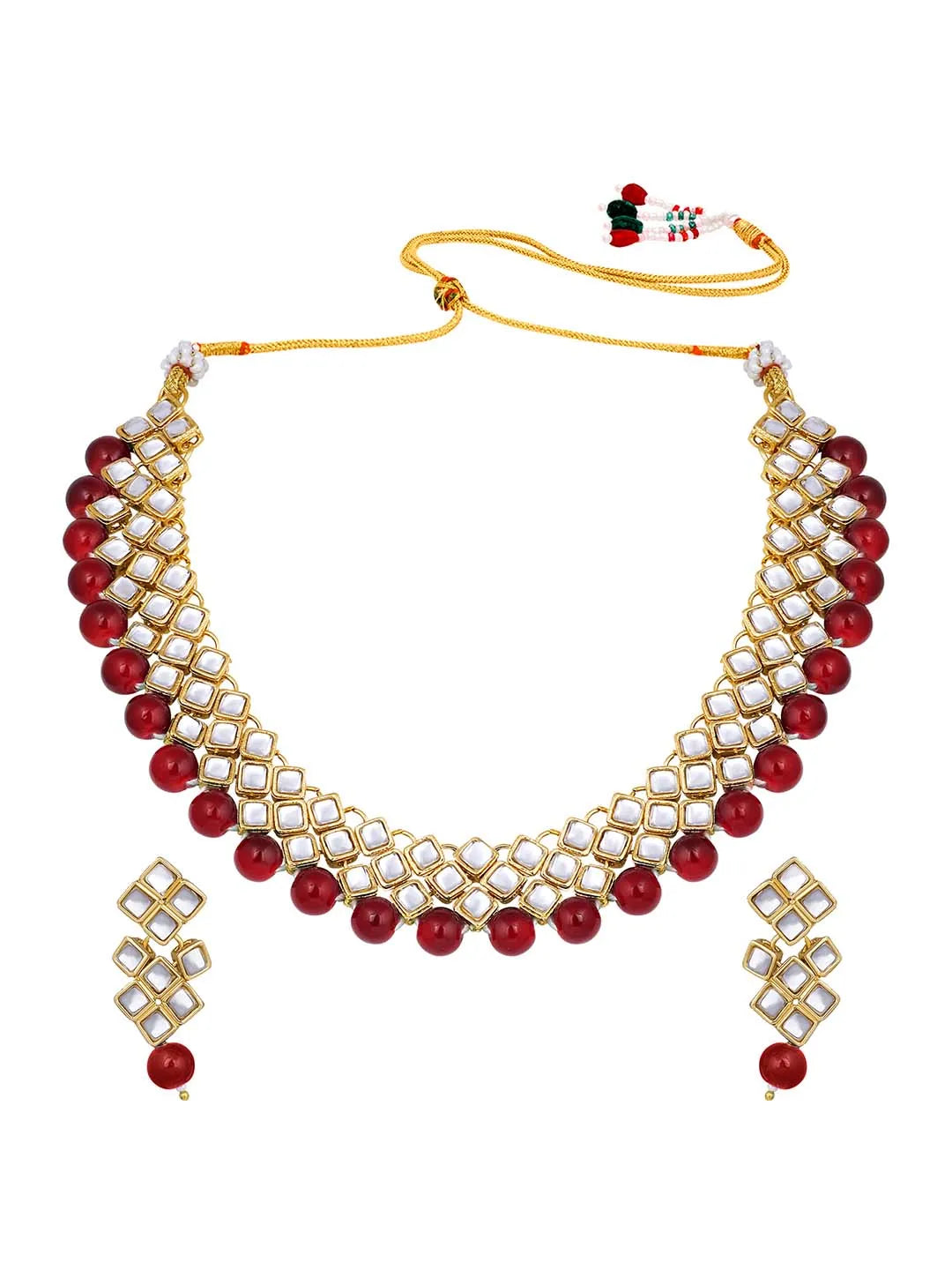 Product Name: Radiant Maroons Kundan Necklace Set - Maroon