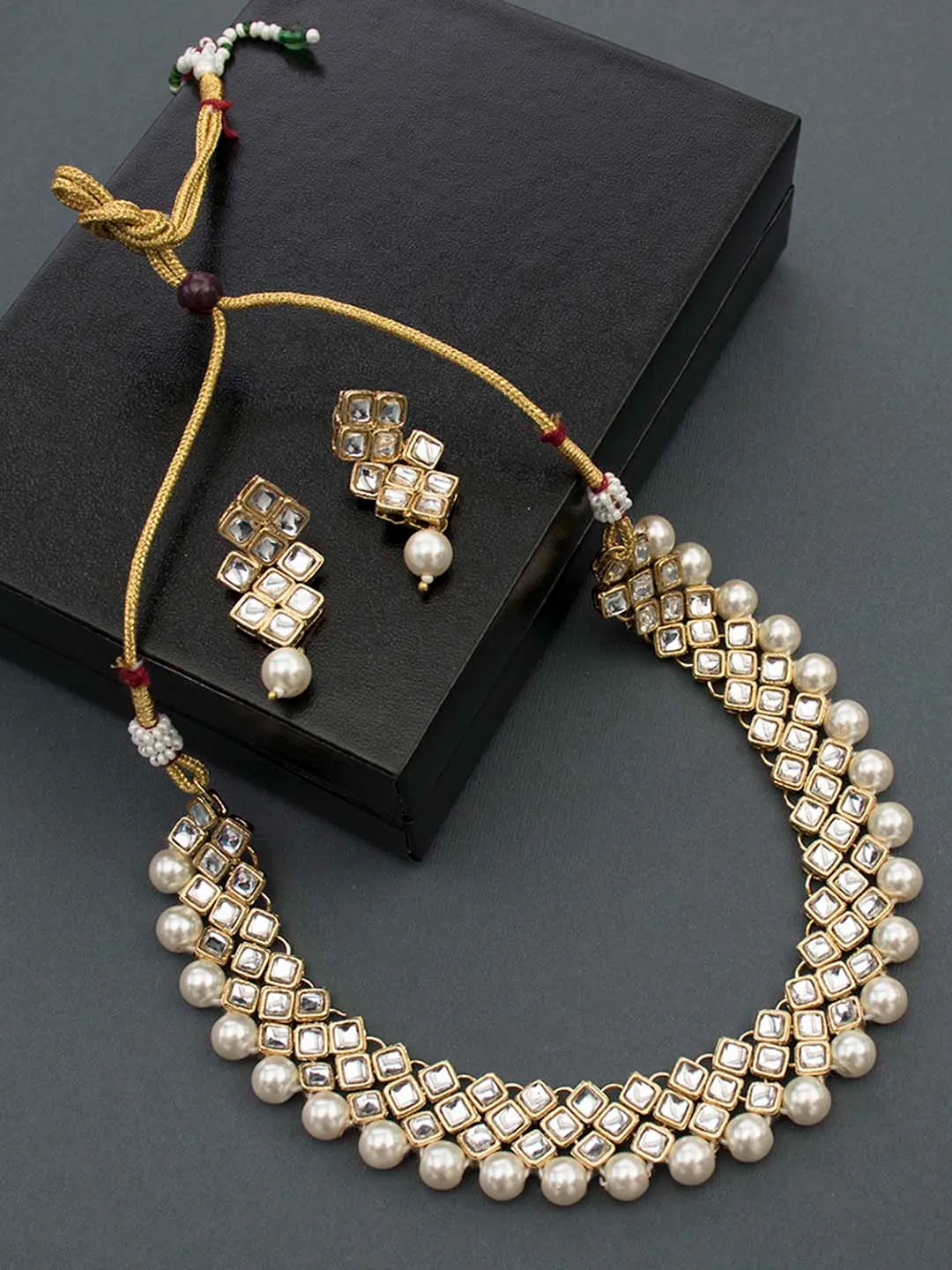 Product Name: Radiant Maroons Kundan Necklace Set - White